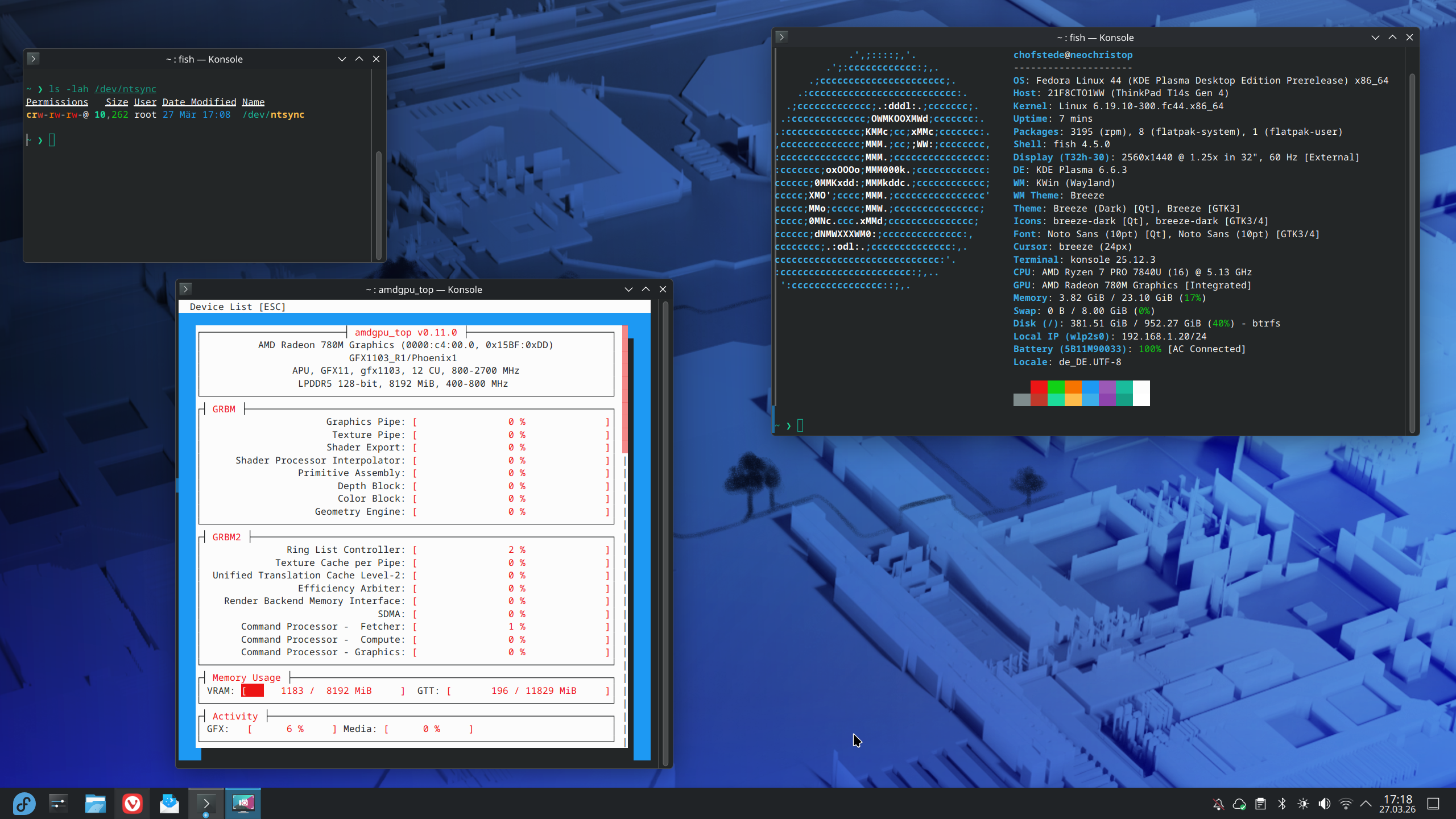 Taking the #Fedora 44 Prerelease for a spin on the ThinkPad (Ryzen 7840U / Radeon 780M) and the KDE Plasma Edition is looking absolutely phenomenal!