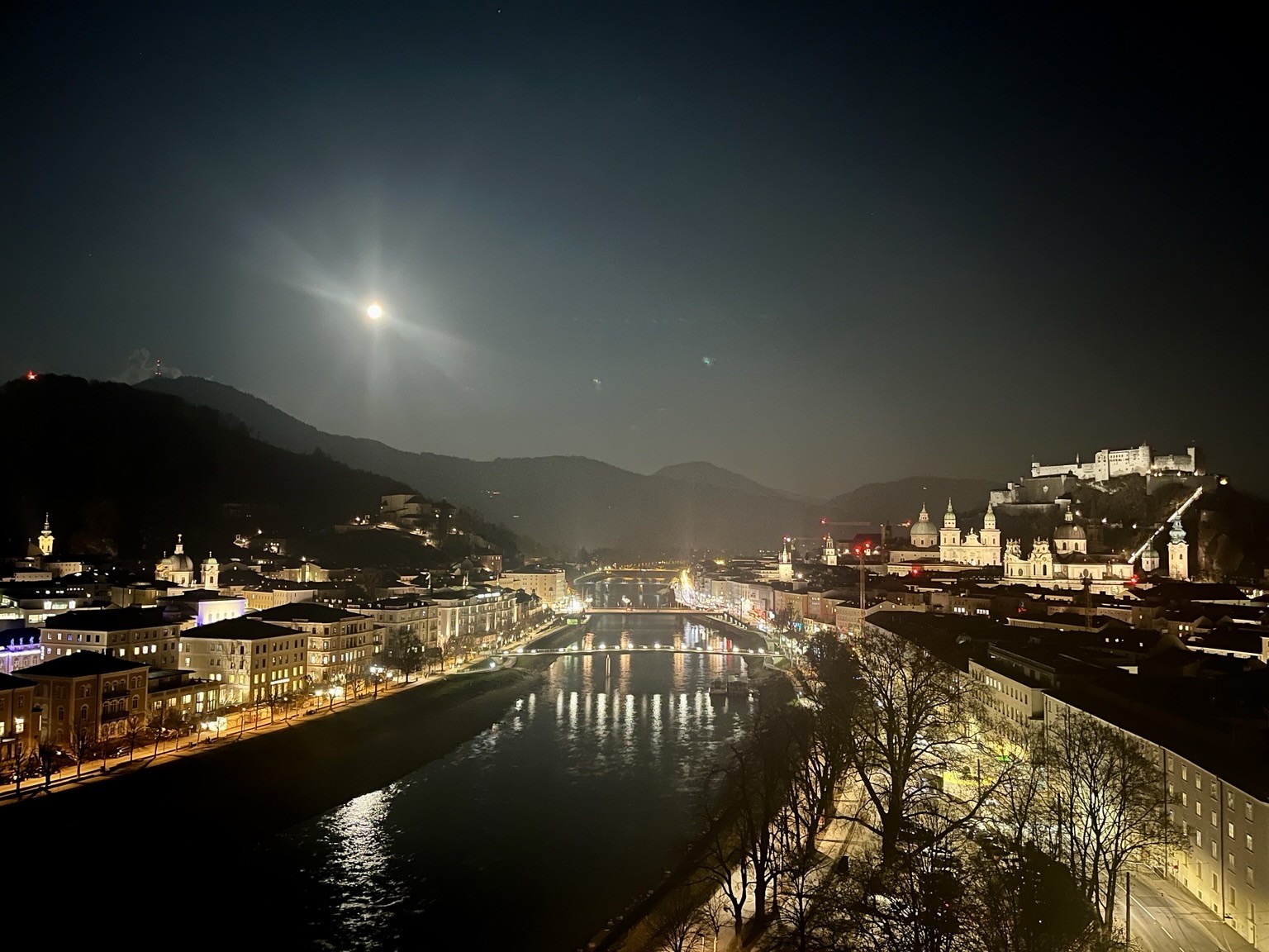 #Abendstimmung #keinfilter #fensterfreitag - Man sieht die letzten Reste eines Sonnenuntergangs, davor eine Wohnstraße mit warmer Beleuchtung. Der Himmel ist unglaublich klar, die Farben, von orange bis blau wirken wie durchsichtig und sehr brillant.