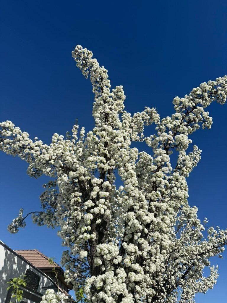 The beautiful blooms in the neighbor's tree this morning were both enchanting and concerning.