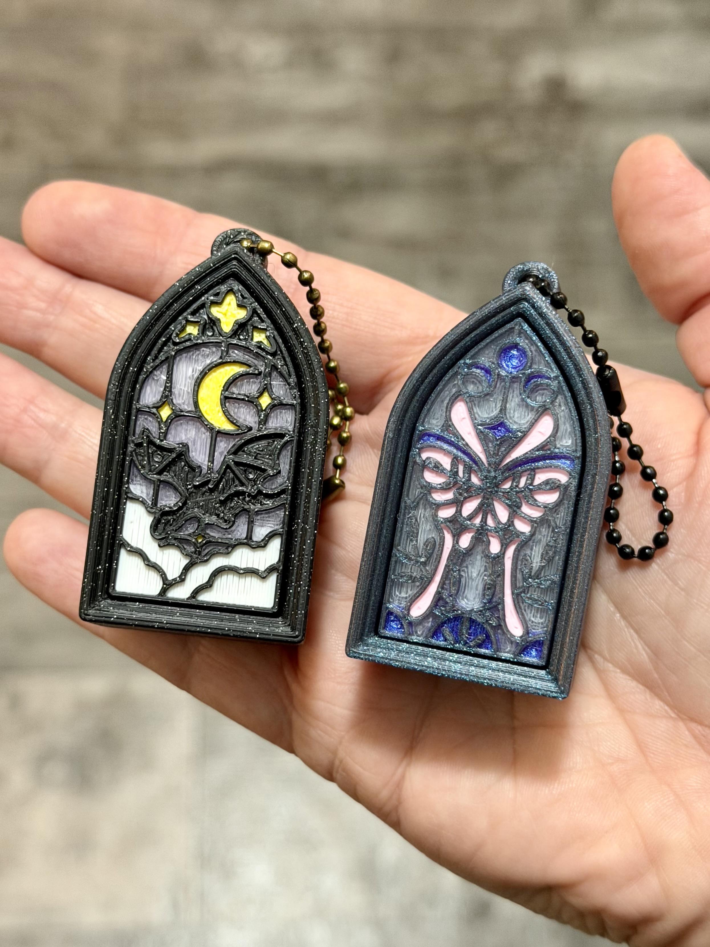 Over the last week, I’ve been working on prototypes and colour combo ideas for these new gothic style ‘clicker’ keychains.