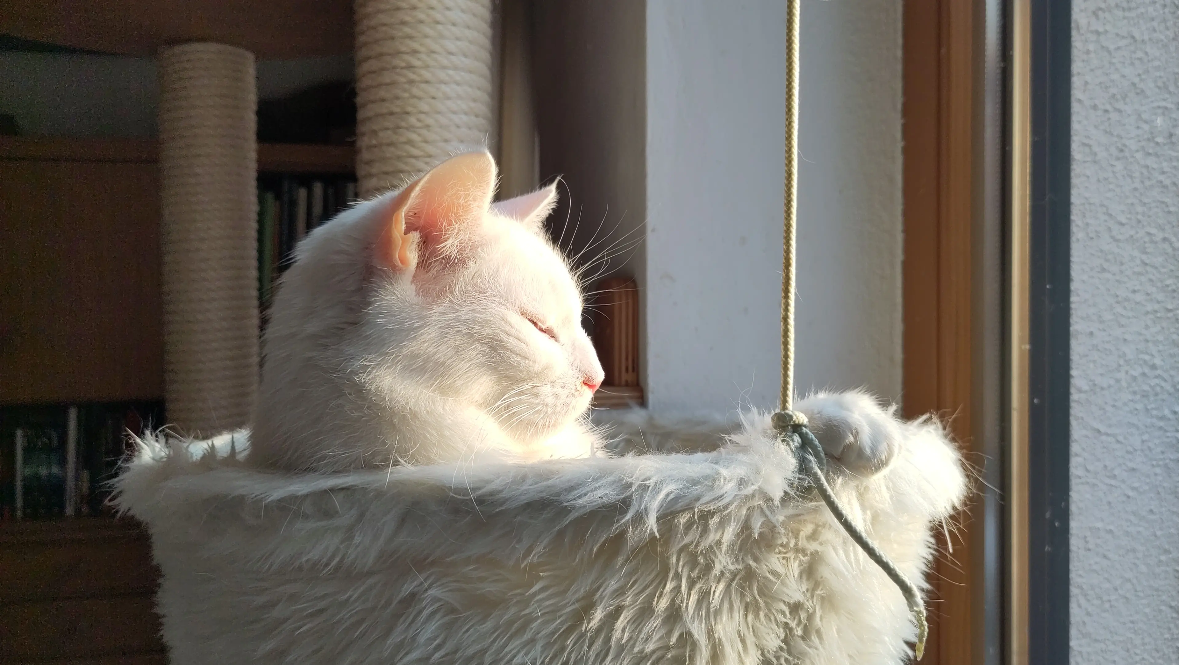 Molly, having a lazy day - scrolling, commenting on bird videos, getting into arguments with other cats