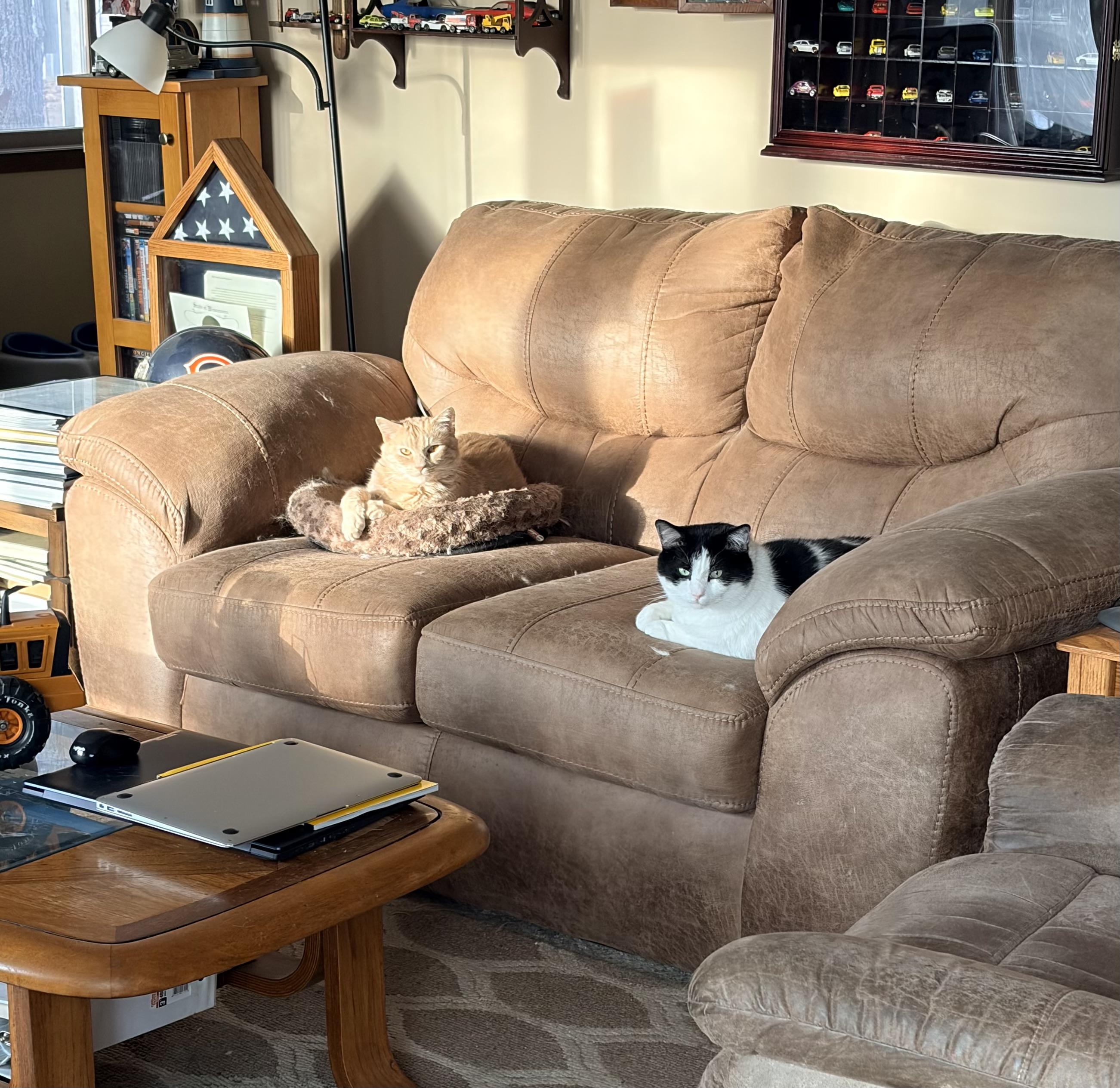 Lou cleans the back of Rhiannon's head, as cat besties do.#TheDivineQueen #LouTheCreamfilledCat #TortieTuesday #TongueOutTuesday #CatsOfMastodon #CatsOfTheFediverse #Catstodon #CatLovers #CatAppreciators #Humane #Rescue