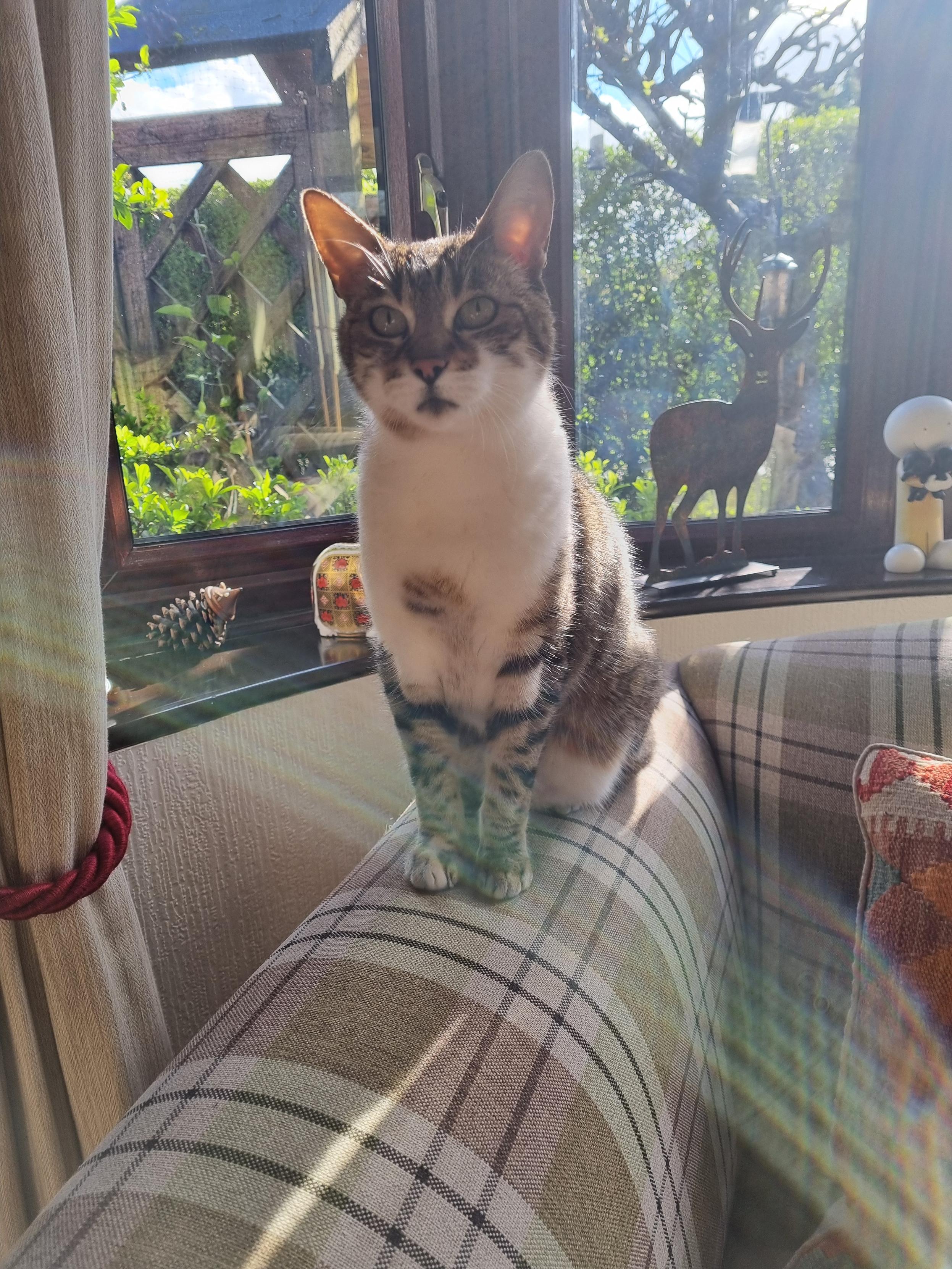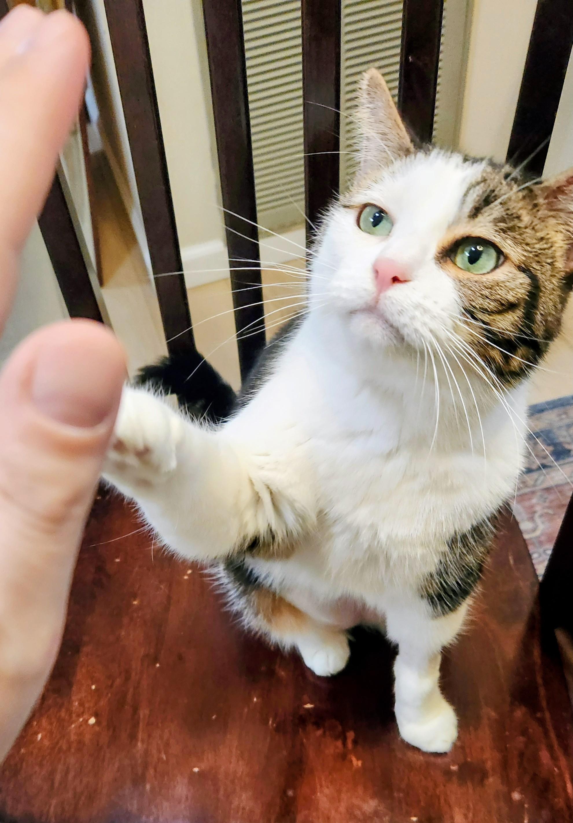 They look zonked but fear not; as soon as I get up and go to the kitchen it’s Gizmo who shows up first, sitting and meowing and acting like he’s starving. Then, it’s Nubs making his way to the kitchen and he sits next to Gizmo and I suddenly have two cats who have me cornered, looking up at me, Gizmo continuing with the meowing and Nubs just … there. So, it’s treats and while they eat, I sneak past and get back to the La Z Boy. #CatsOfMastodon #CaturdayEveryday #NubsNGizmo#TheRoutine