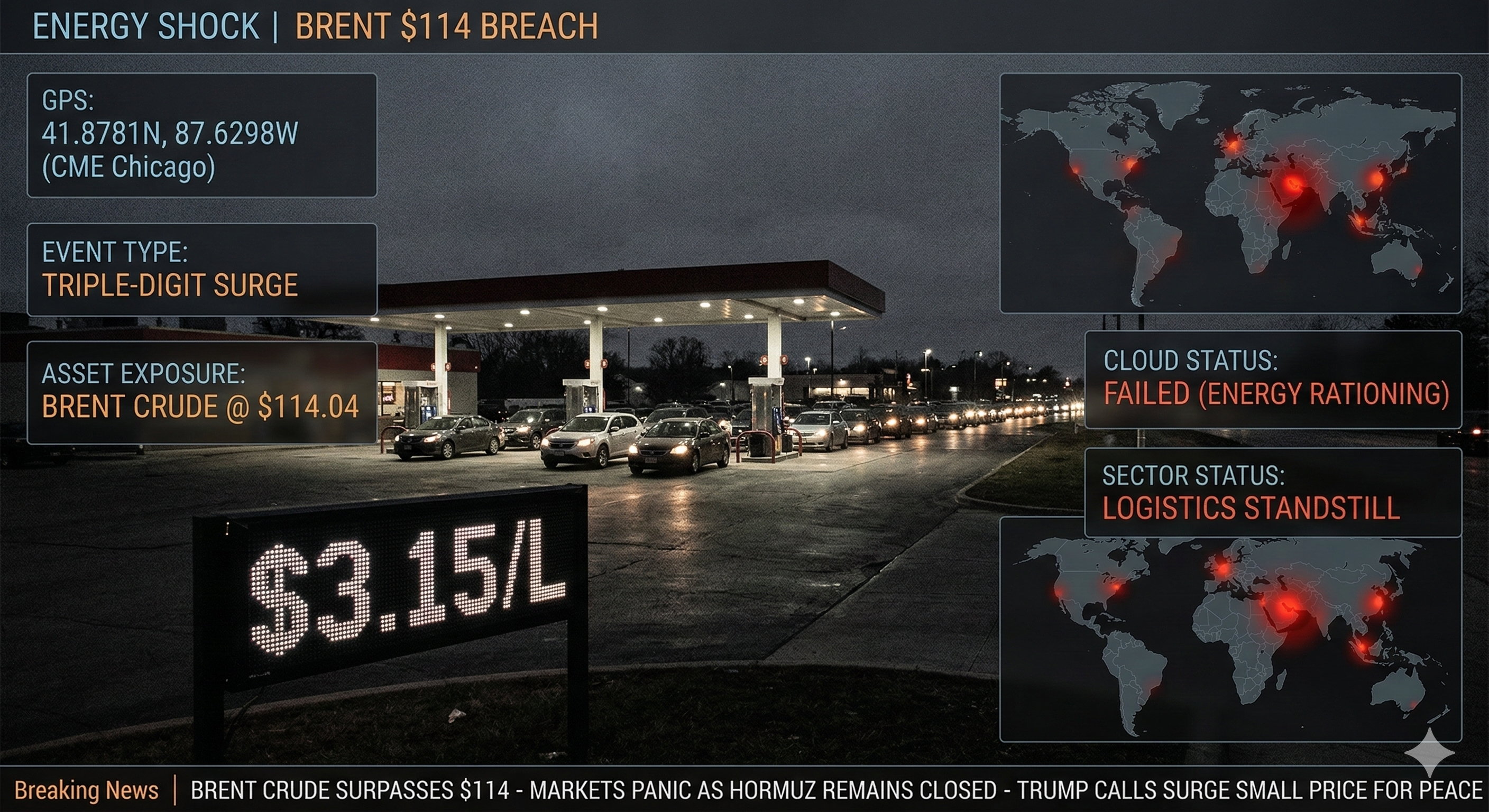 THE $100 BARREL BREACH – GLOBAL ENERGY SHOCK️ DATE: MARCH 9, 2026 | The psychological and economic floor of the global energy market has collapsed. As of Monday morning, March 9, 2026, Brent Crude has surged to levels not seen in nearly four years.The Triple-Digit Surge: Following the resumption of trading on the Chicago Mercantile Exchange, Brent Crude immediately rocketed past the $100 threshold, peaking at $114.00 per barrel—a staggering 23% increase from Friday's close. West Texas Intermediate (WTI) followed suit, trading near $114.00, representing a 25% jump.Hormuz Standoff: The primary driver is the functional closure of the Strait of Hormuz. While U.S. officials claim disruptions will be "short-term," maritime data shows tanker traffic has virtually ceased. Approximately 20 million barrels of oil per day—roughly one-fifth of global supply—are currently trapped or diverted, creating an immediate physical shortage.Refinery Attrition: Smoldering oil depots in Tehran, following overnight strikes, have further reduced Iran's domestic processing capacity, forcing the regime to divert crude away from export markets to maintain internal stability. CLOUD STATUS: FAILED (ENERGY RATIONING & DATA CENTER RISK)The energy shock is cascading into the digital infrastructure layer.Power Prioritization: Governments in highly import-dependent regions, particularly in South Korea and parts of the EU, are preparing "Energy Priority" protocols. These measures may force data centers to operate on reduced power or switch to emergency onsite generation to protect critical residential and hospital grids.Cost of Compute: The surge in oil and gas prices is expected to double the operational costs of major cloud regions within the next 48 hours. Enterprise users are being warned of "Energy Surcharges" on high-intensity AI and rendering tasks. ASSET EXPOSURE: BRENT CRUDE & INFLATIONARY SURGEFinancial markets are in a state of "Stagflationary Panic."Global Equity Sell-off: Markets in Tokyo and Seoul have already slumped by over 7%, as investors price in the combined impact of high energy costs and a trade-war induced supply crunch.The $200 Threat: The Iranian Revolutionary Guard Corps (IRGC) issued a chilling warning this morning, stating that if the military intervention continues, oil could soar to $200 per barrel. Markets are taking the threat seriously, with volatility indexes reaching record highs.Strategic Reserves: U.S. Senate leaders have officially called for an emergency release from the Strategic Petroleum Reserve (SPR) to combat the spike, though analysts warn that reserves are already at historic lows following previous interventions.️ SECTOR STATUS: GLOBAL LOGISTICS COLLAPSEThe cost of moving goods is becoming prohibitive.Freight Surcharge: Major logistics hubs are reporting "off the charts" freight prices. With fuel prices jumping past $3 per litre at the pump in multiple countries, the transport sector is facing a de facto standstill for low-margin goods.Reinsurance Plan: Washington has floated a $20 billion reinsurance plan to encourage tankers to return to the Strait of Hormuz under military escort, but private insurers remain hesitant given the active missile and drone threat. FACT-CHECK | VERIFIED SOURCES (MARCH 9, 2026) [The Hindu] - March 9, 2026: Crude oil prices surpass $114 a barrel as Iran war impedes production, shippinghttps://www.thehindu.com/business/markets/crude-oil-prices-surpass-100-a-barrel-as-iran-war-impedes-production-and-shipping/article70720990.ece️ [The Guardian] - March 9, 2026: Iran war drives oil prices above $100 a barrel for first time since 2022https://www.theguardian.com/business/2026/mar/09/iran-war-drives-oil-price-above-100-a-barrel-for-first-time-since-2022 [Al Jazeera] - March 9, 2026: Oil soars past $100 a barrel as US-Israel war on Iran rageshttps://www.aljazeera.com/economy/2026/3/9/oil-soars-past-100-a-barrel-amid-iran-war [The National] - March 9, 2026: Oil prices surge past $110 and Asian markets slump as Iran war escalateshttps://www.thenationalnews.com/business/energy/2026/03/09/oil-prices-surge-past-110-and-asian-markets-slump-as-iran-war-escalates/ [CNA] - March 9, 2026: Oil prices surge 20% as expanding US-Israeli war with Iran cuts supplieshttps://www.channelnewsasia.com/business/oil-prices-surge-20-expanding-us-israeli-war-iran-cuts-supplies-mideast-5980331#civicohub.nl #new #EnergyShock #Brent114 #OilWar #HormuzBlockade #Stagflation2026