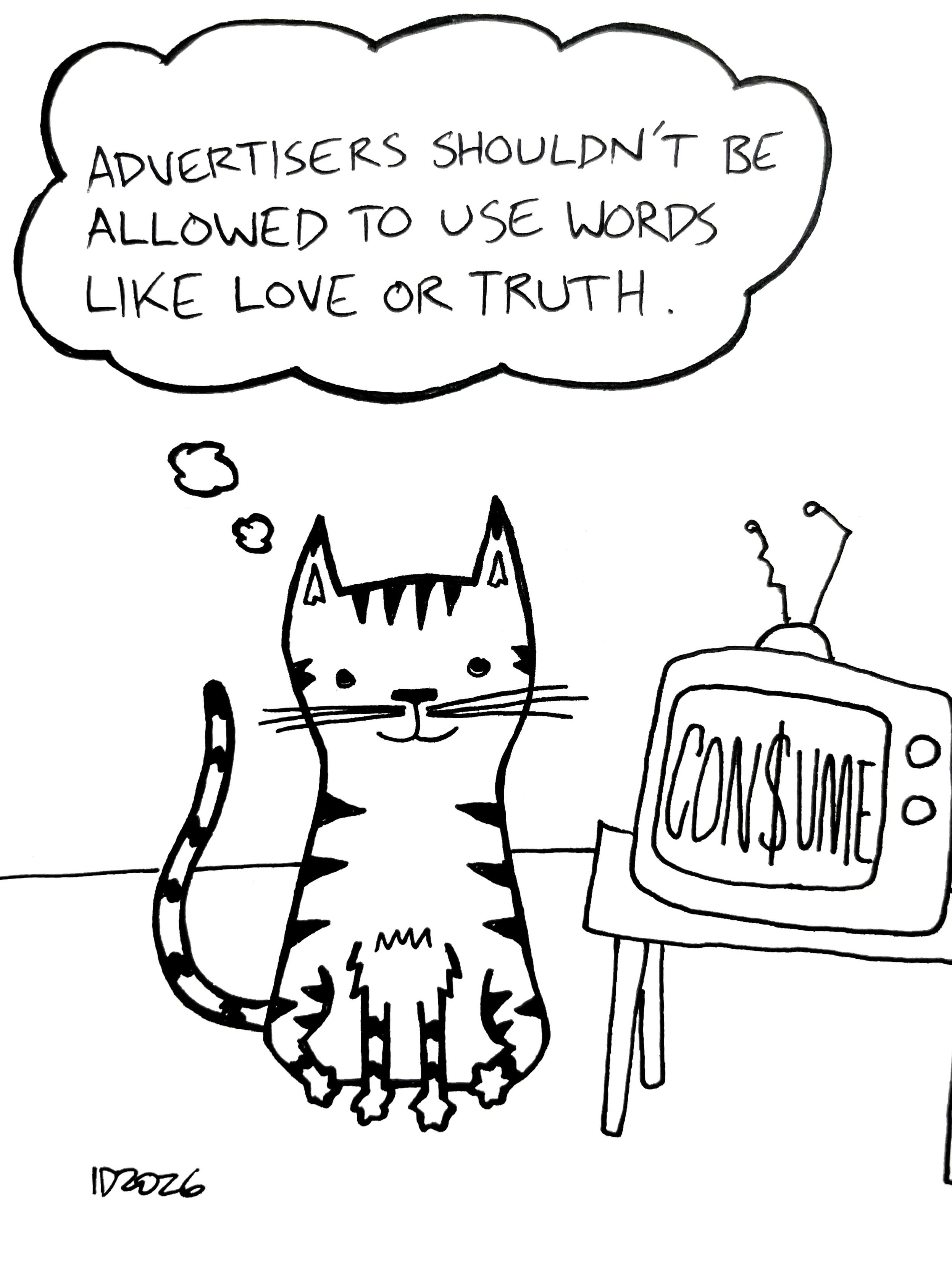 good morning, enjoy a crime cat.#TheCrimeCats say they will never sell love or truth or liberation. get them out of your head.consider supporting http://ko-fi.com/thecrimecats #comic #comics #ComicStrip #DailyComic #IndieComic #WebComic #cat #cats #crime #anarchy #anticapitalism #antifascism