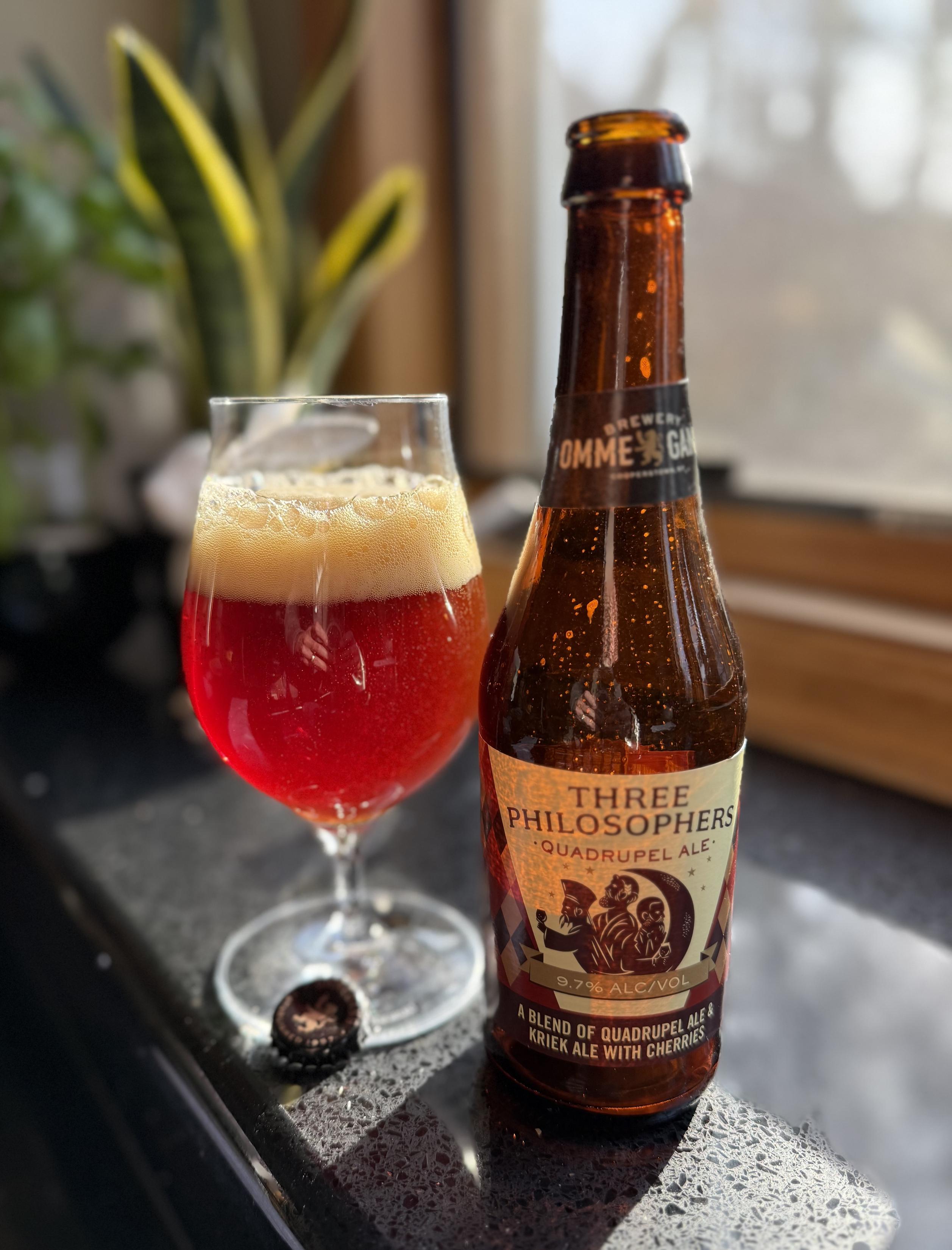 Events can be so weird, so sudden. So unfair.Reach for the light, hold your people, ponder…#ommegang Three Philosophers quadruple ale for deep thoughts…Big malty tart cherry lead on a moderately carbonated body with a sharp finish and a hint of bitters.#craftBeer