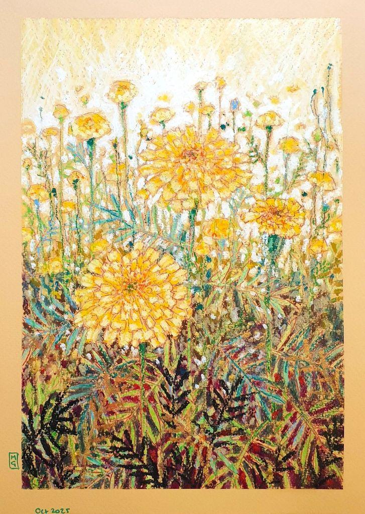 A miniature painting of pink cosmos flowers, A lovely little gift idea for Mother's Day.