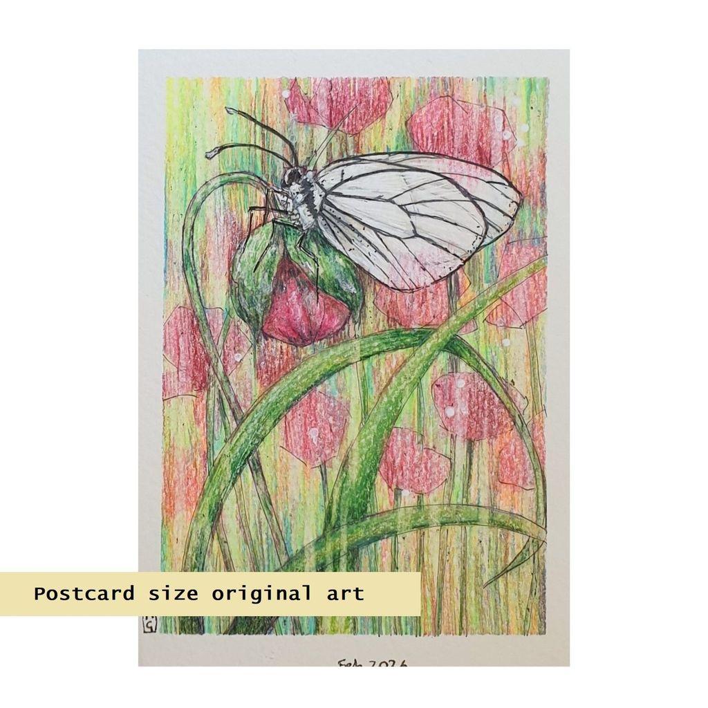 This black-veined white butterfly is a small original artwork at a small price that can be sent direct as a gift with a message and will easily fit in a standard letterbox.https://folksy.com/find/item/8611699