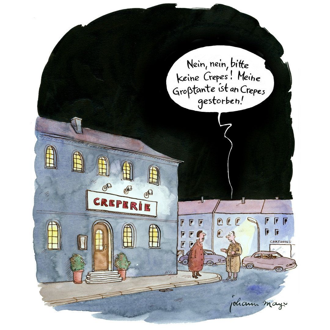 #krebs #crepes #krankheit #restaurante #essen #wortwitz #johannmayr #tagescartoon #cartoondestages #cartoon #ironie #cartoons #humor #scherz #witzbild