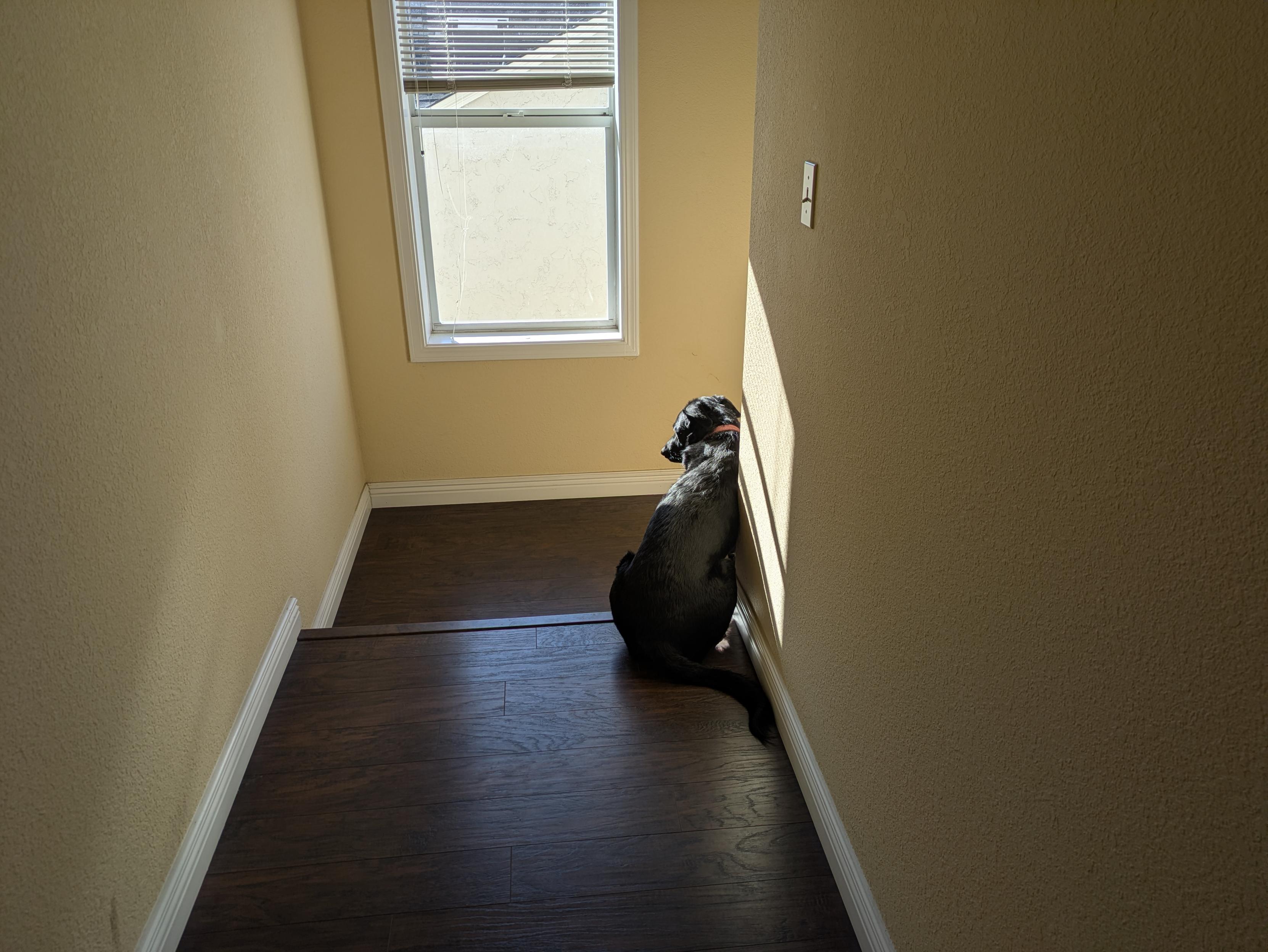 I am holding a sealed package of salt crackers and Odin is literally trembling with anticipation over the idea I might one day open it.