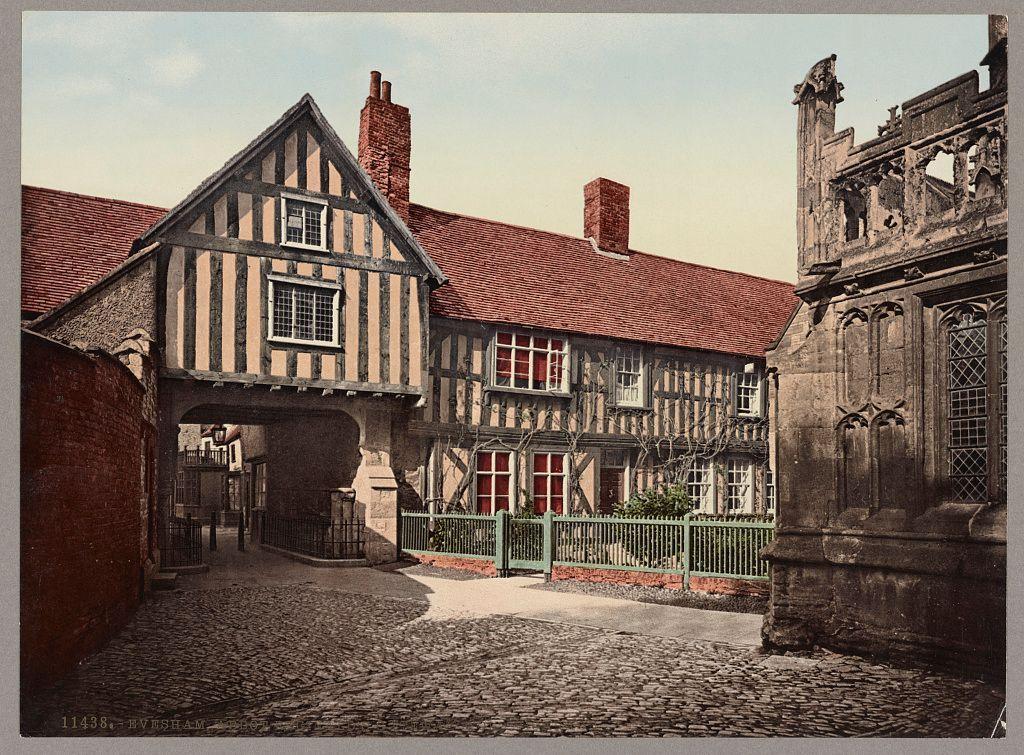 Evesham, Abbot Reginald's gateway & old vicarage between 1890 and 1900 Gates England Evesham 1890-1900,Religious dwellings England Evesham 1880-1920