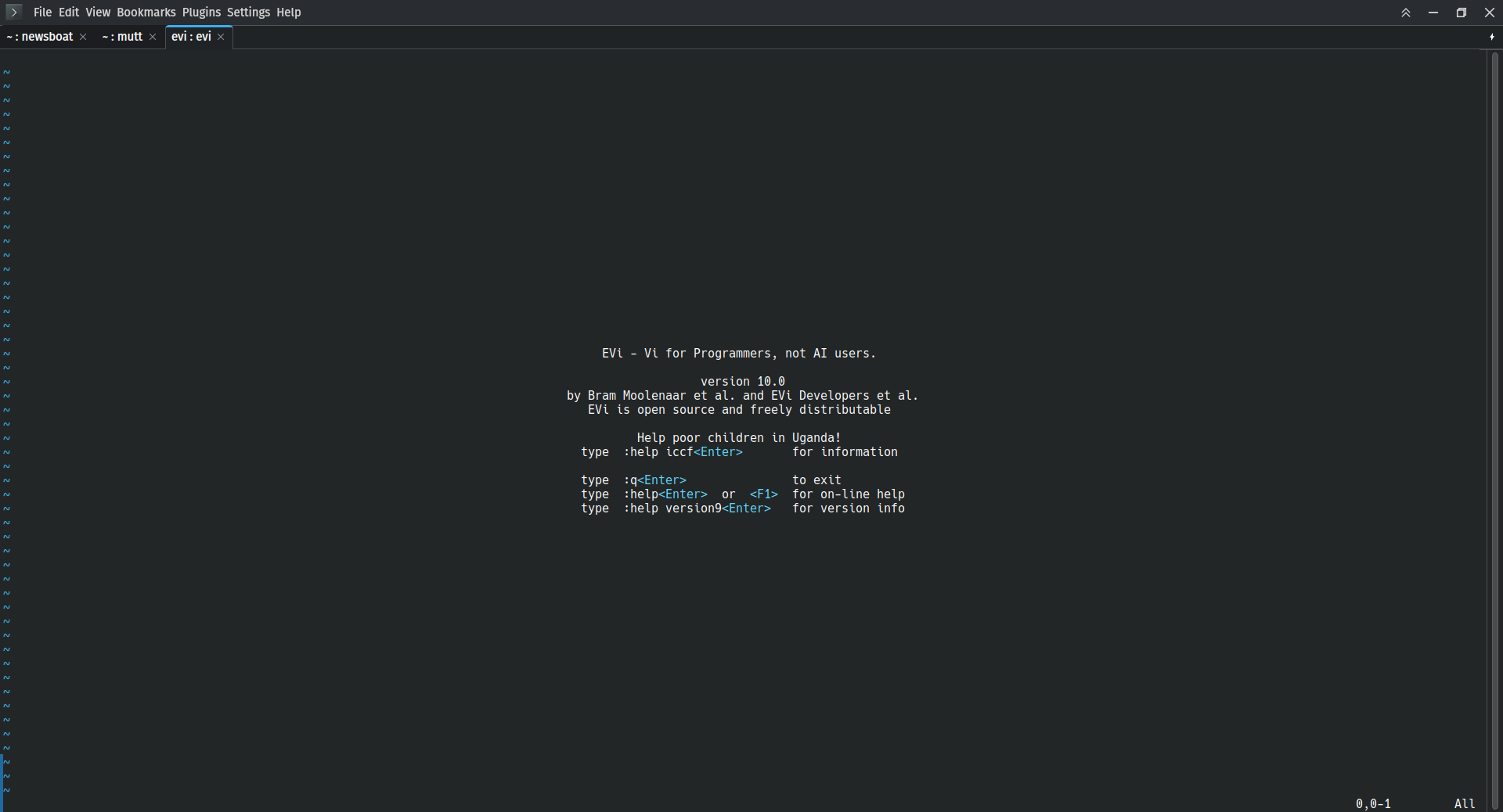Made an issue on #Codeberg for progress on updating #EVi's Ugandan orphan support links and references to match current #VIm.It's only right that we do that. Like I said in the issue:"Despite us being a hard fork, I believe that Bram's mission should not be abandoned here."https://codeberg.org/NerdNextDoor/evi/issues/42 Not to mention, I've made a bit of a start:https://codeberg.org/NerdNextDoor/evi/commit/880e3c2ad7d1a9a7221bec74ed261c33fed5b252#Vi #Tech #Technology