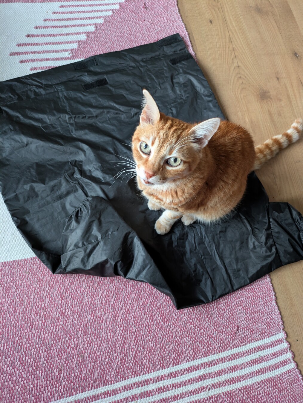1. The cat always sits down on the dark bag whenever I unfold it.