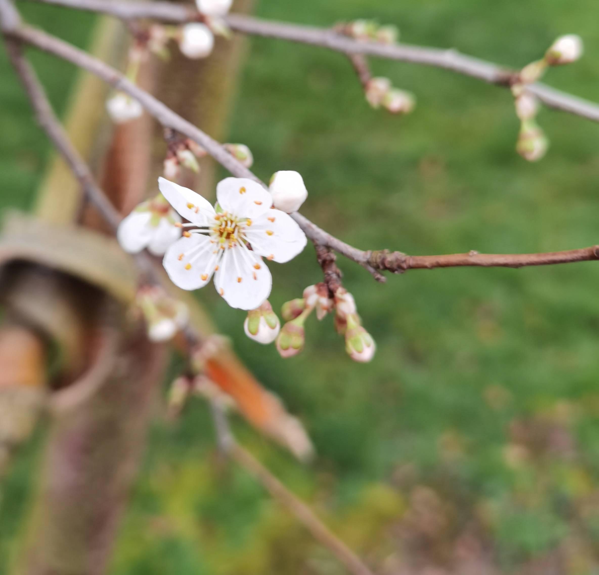 Several years ago a cherry plum (prunus cerasifera) made its home in a brushy area of our yard.