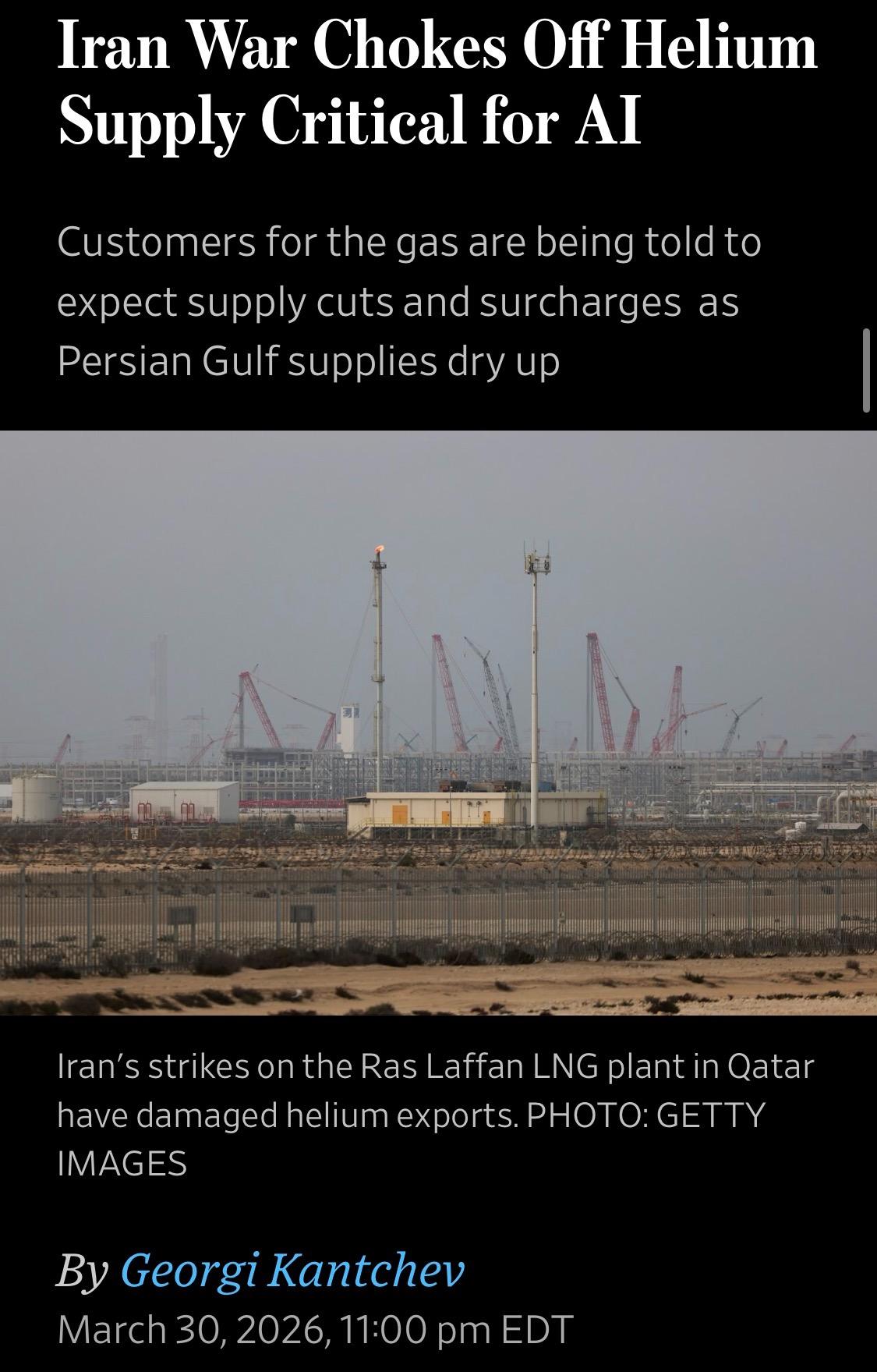 Not the helium balloons And the MRI machines... they're important too...#IranWar #StraitOfHormuz #helium--https://www.wsj.com/world/iran-war-chokes-off-helium-supply-critical-for-ai-bf020a3f