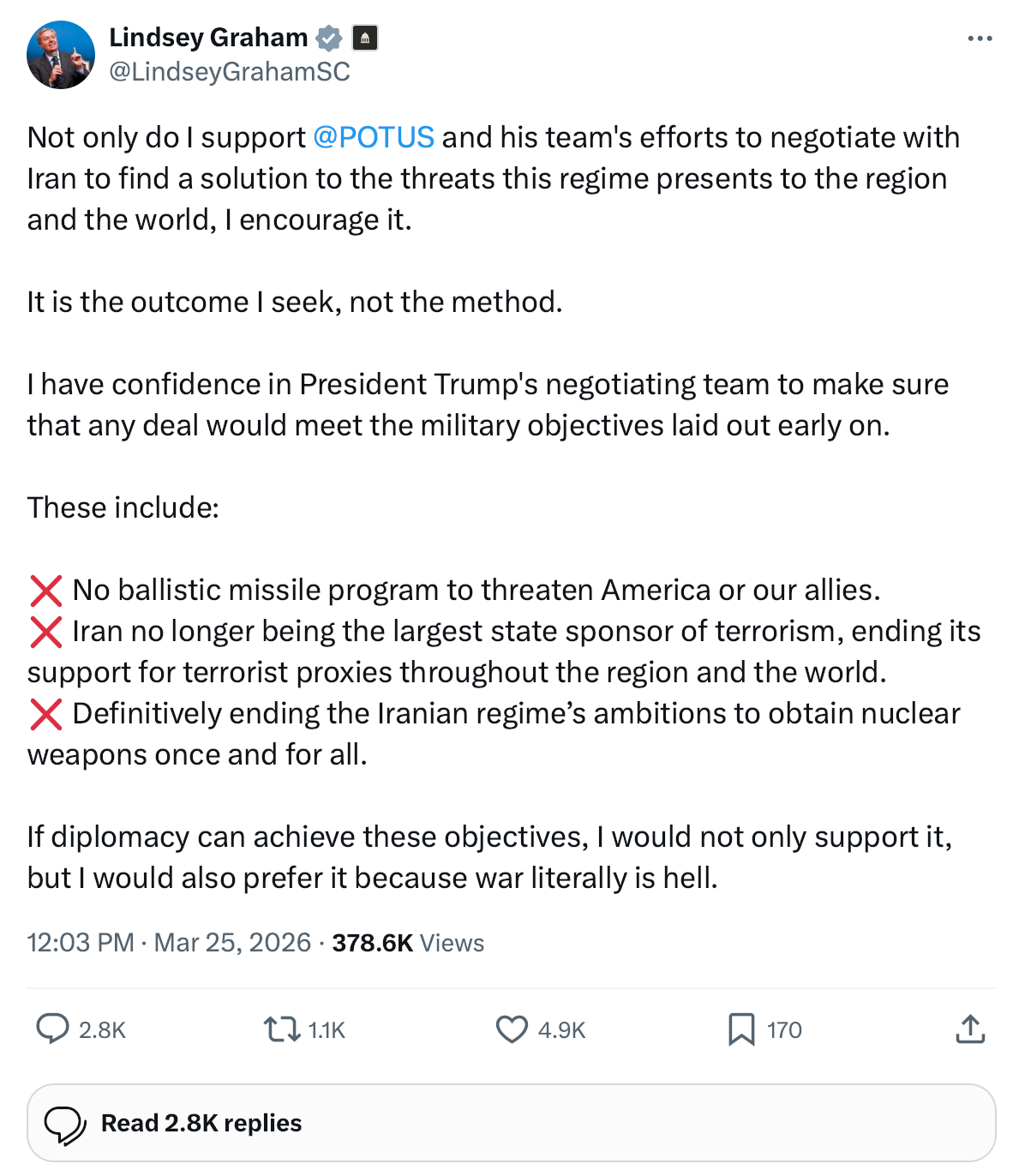 The demonic entity known as "Lindsey Graham" has spent its entire life demanding wars for Israel.