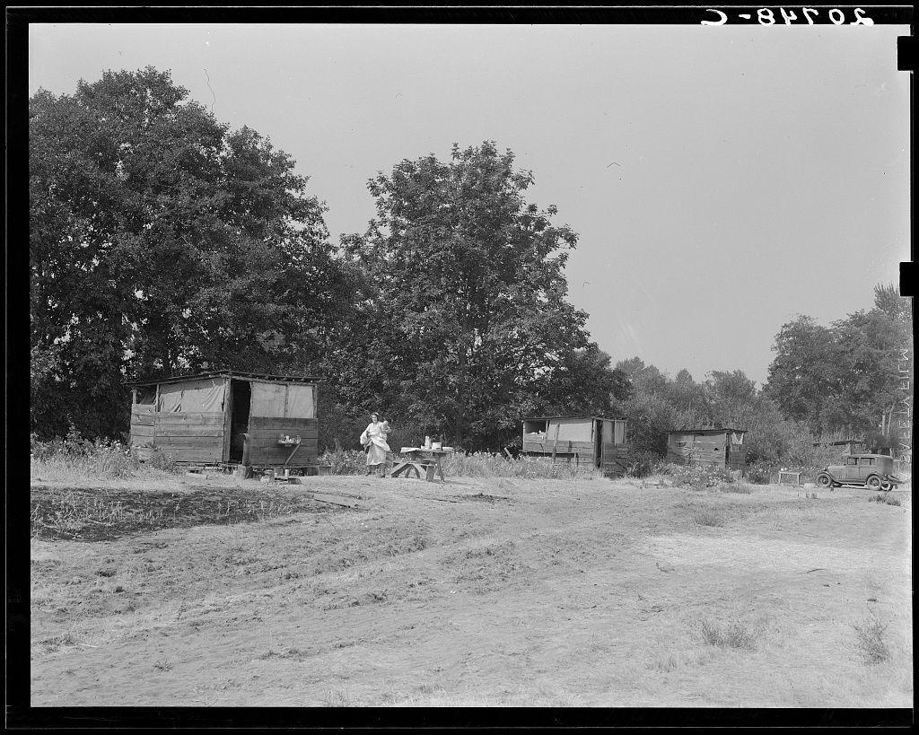 Oregon, Josephine County, near Grants Pass. Fourteen such shacks on grower's land for his crew.