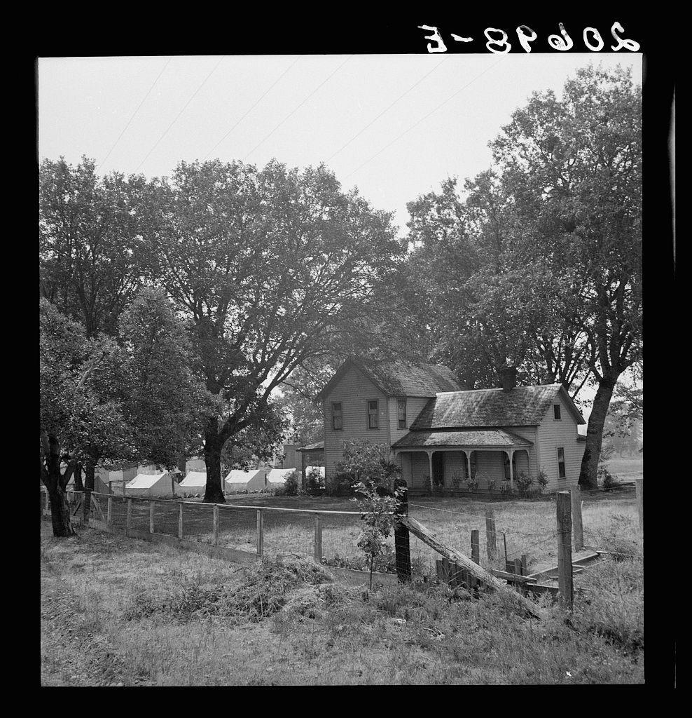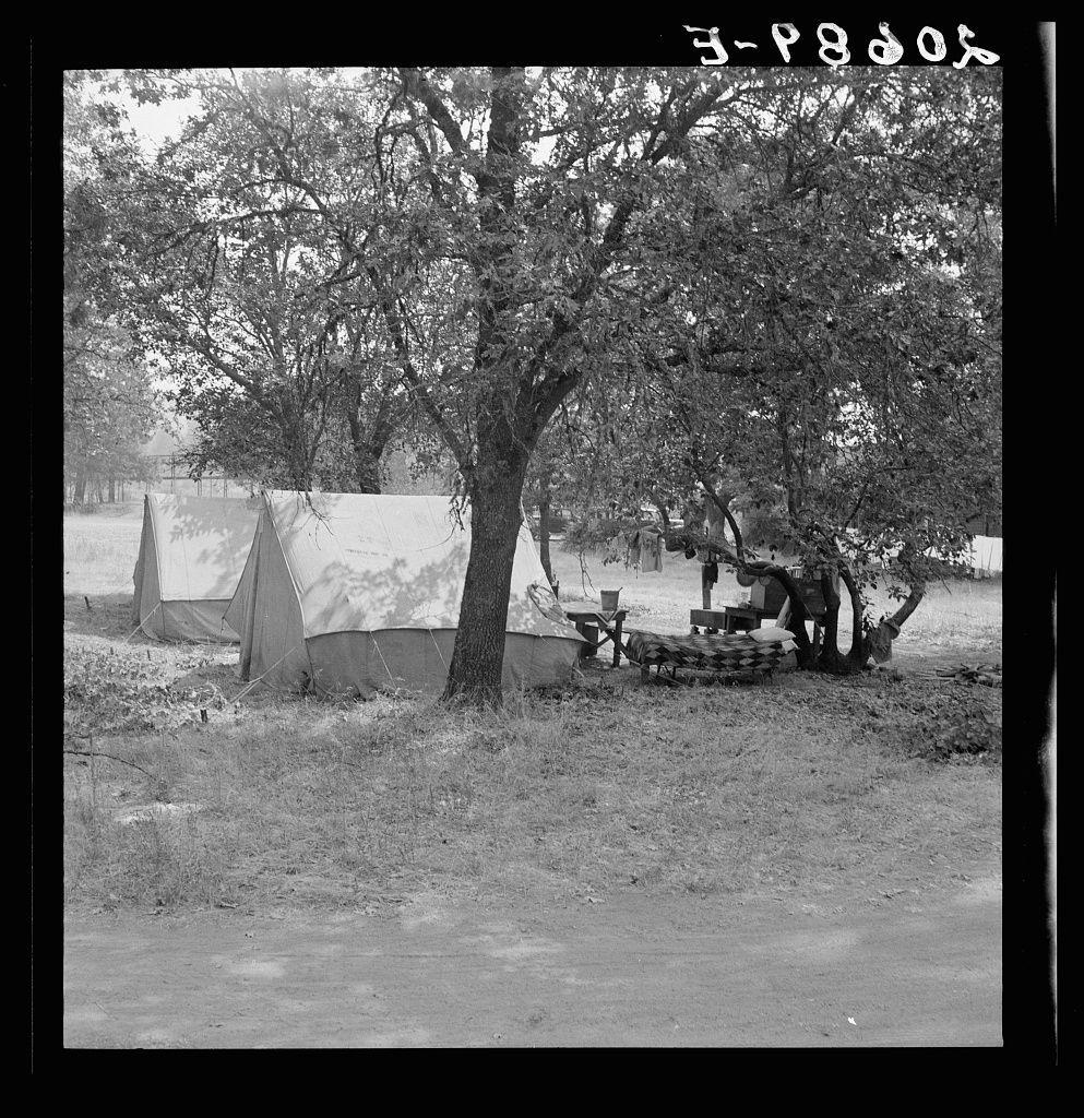 Hop grower's home on Rogue River, with the tent camp he provides for his pickers beyond.