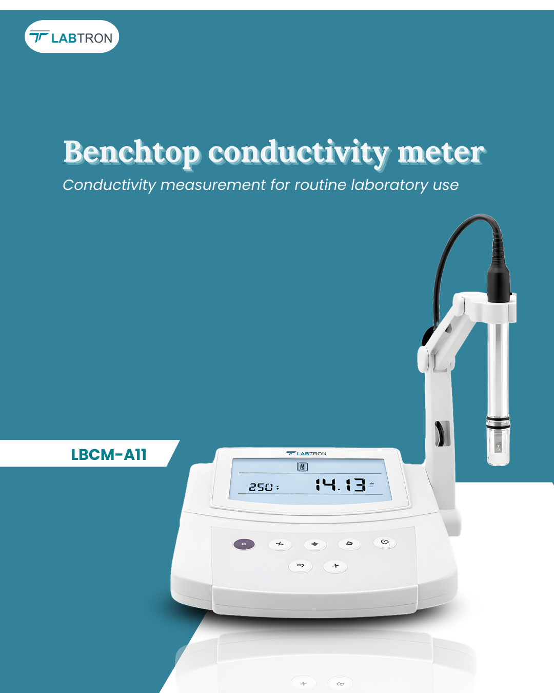 Benchtop conductivity meter LBCM-A11 - Conductivity MeterLabtron Benchtop Conductivity Meter supports one to three point calibration with automatic standard recognition. An LCD display enables clear readings and parameter setup, while manual temperature calibration supports measurement control. Up to six parameters including cell constant can be configured.#LabEquipment #Benchtopmeter#Labtron https://www.labtron.com/benchtop-conductivity-meter/lbcm-a11