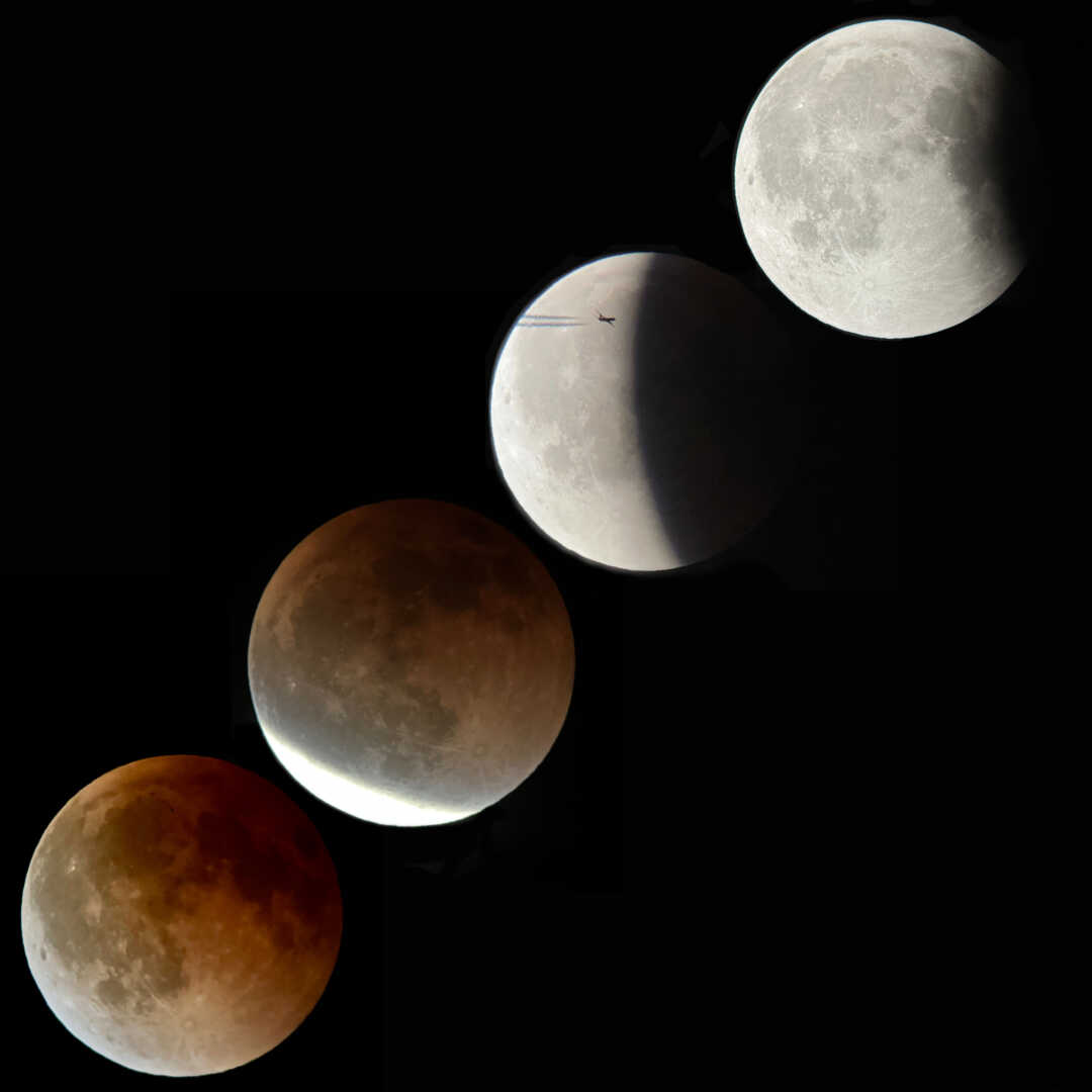 Composizione delle foto scattate il giorno del 7 settembre 2025 in occasione dell'eclisse di Luna a Porto ottiolu🌘✨