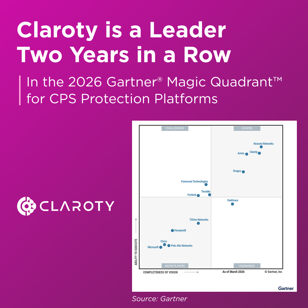 Claroty was once again recognized as a Leader in the 2026 Gartner Magic Quadrant for CPS Protection Platforms!Read the report: https://claroty.com/resources/reports/claroty-named-a-leader-in-2026-gartner-magic-quadrant-for-cps-protection-platforms #MagicQuadrant