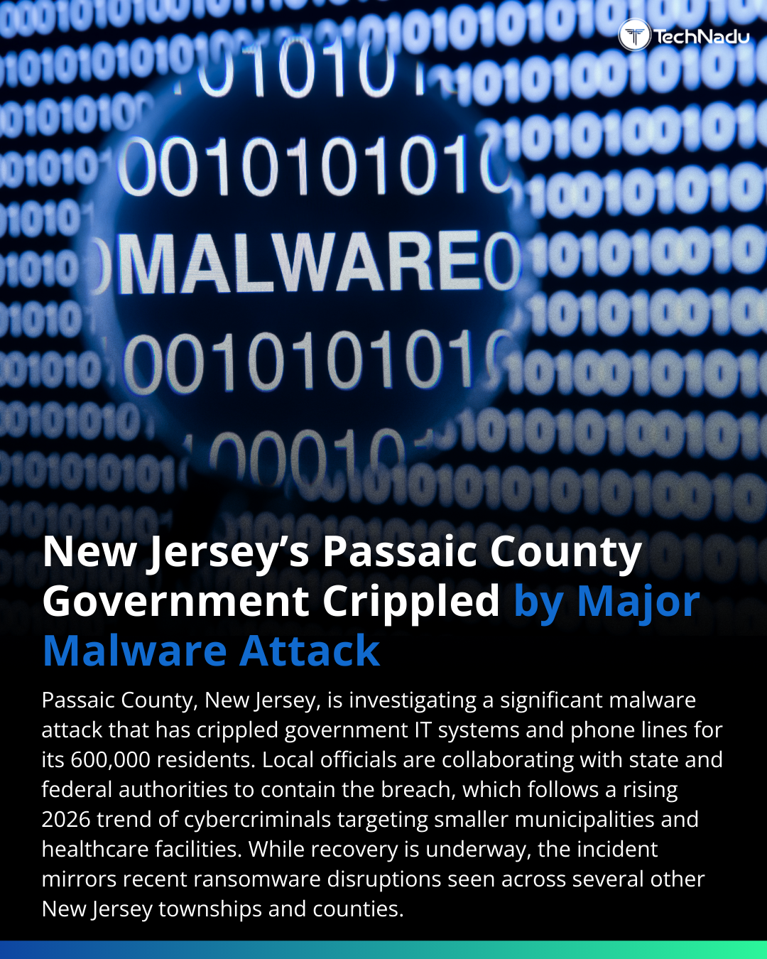 Local government infrastructure continues to attract cybercriminal attention.Passaic County, New Jersey has confirmed a malware attack affecting government IT systems and phone lines, disrupting communications across multiple county offices serving nearly 600,000 residents.Authorities are currently coordinating with federal and state investigators to analyze and contain the incident.The attack reflects a broader threat trend affecting public sector infrastructure.Recent cyber incidents have targeted municipal systems across:Florida, Connecticut, West Virginia — as well as multiple locations in New Jersey including Somerset County, Camden County, Bergen County, Montclair Township, Hoboken.For security professionals, these events raise several key questions:• Are local governments adequately resourced for modern threat environments?• How should municipalities prioritize cyber resilience investments?• What role should federal coordination play in protecting local infrastructure?Share your professional perspective in the comments.Follow us for more cybersecurity incident analysis, threat intelligence, and infrastructure security insights.#Cybersecurity #Infosec #ThreatIntelligence #Ransomware #Malware #CyberDefense #PublicSectorSecurity #NetworkSecurity #IncidentResponse