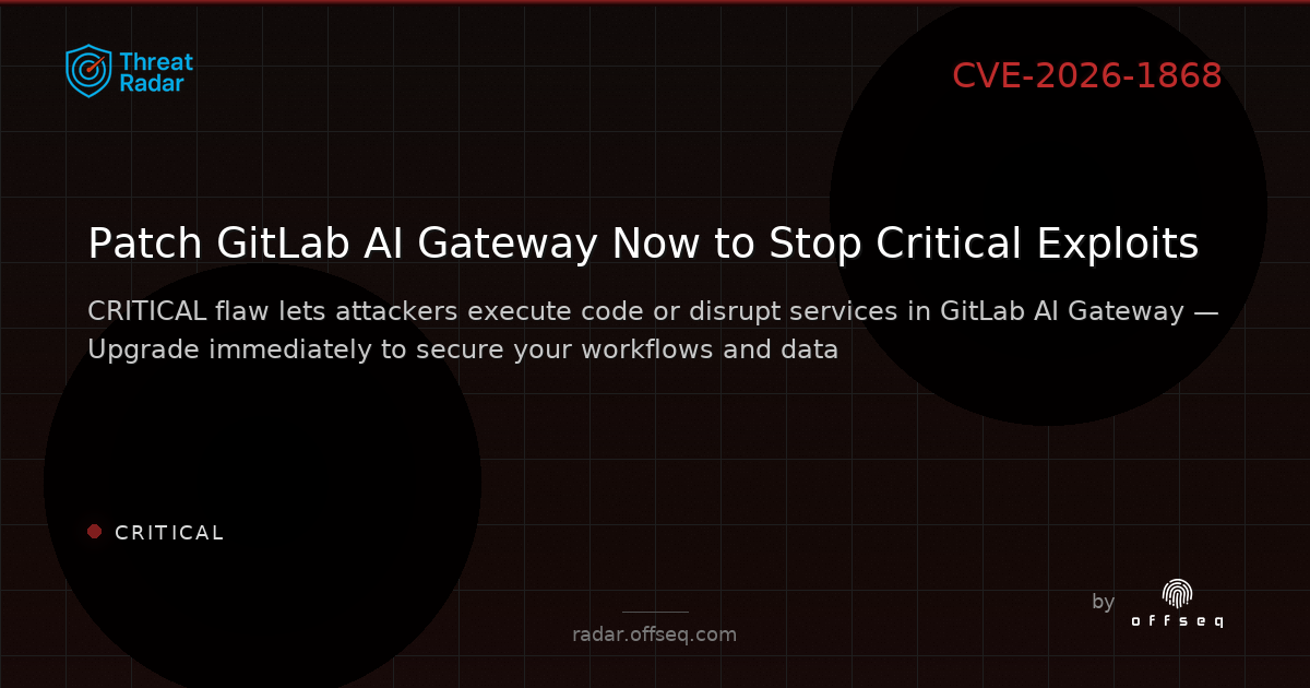π¨ CRITICAL: CVE-2026-1868 in GitLab AI Gateway (18.1.6 β 18.8.0) allows remote code execution or DoS via Duo Workflow Service.