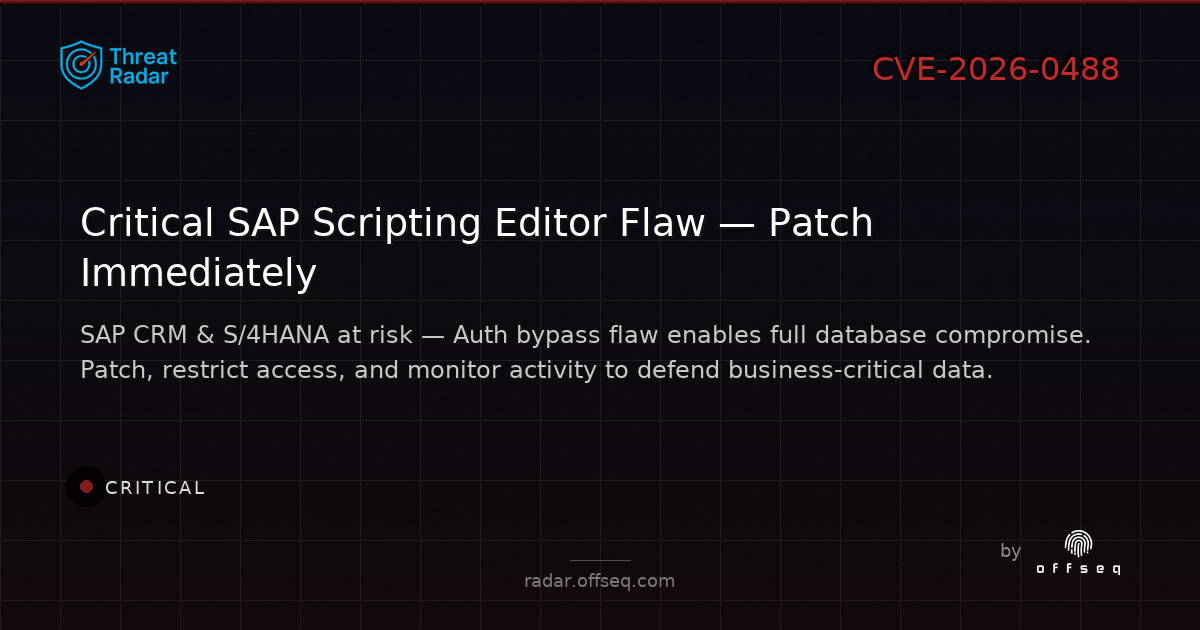π₯ CVE-2026-0488 (CVSS 9.9): CRITICAL auth bypass in SAP CRM & S/4HANA Scripting Editor.