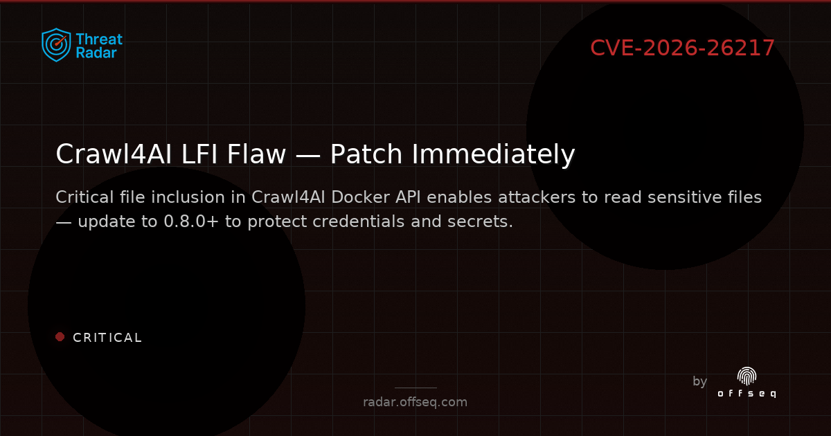 π¨ CRITICAL: CVE-2026-26217 in Crawl4AI (<0.8.0) enables unauthenticated file read via Docker API endpoints.