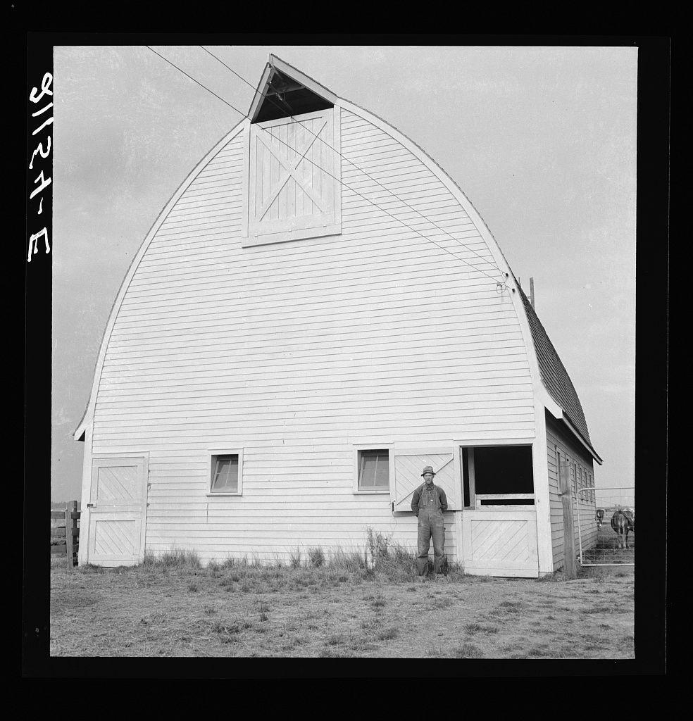 Farmer from Nebraska and his new barn on the Yamhill farms (FSA - Farm Security Administration) project.