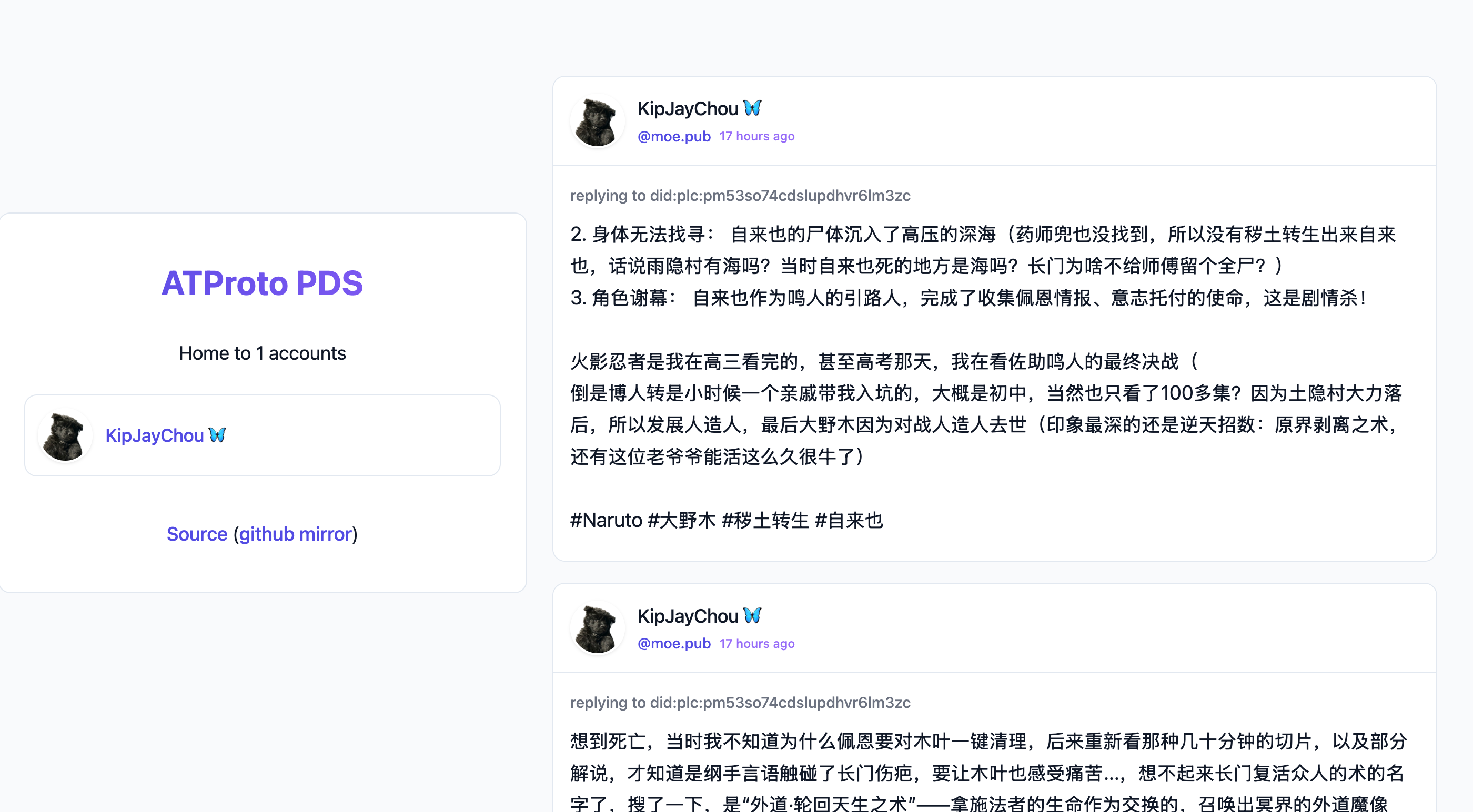 PDS-Dash:实例:https://pds.witchcraft.systemsFork实例:https://selfhosted.social我的实例:https://pds-dash.moe.pub仓库:Forgejo:https://git.witchcraft.systems/scientific-witchery/pds-dashGithub:https://github.com/witchcraft-systems/pds-dashFork仓库:https://tangled.org/baileytownsend.dev/pds-dash-fork我的仓库:https://git.fedditlab.de/jay/pds-dash-moe-pub (添加Docker+Caddy部署、Glass主题)#pds #pdsdash #bluesky #atproto #moepub #forgejo