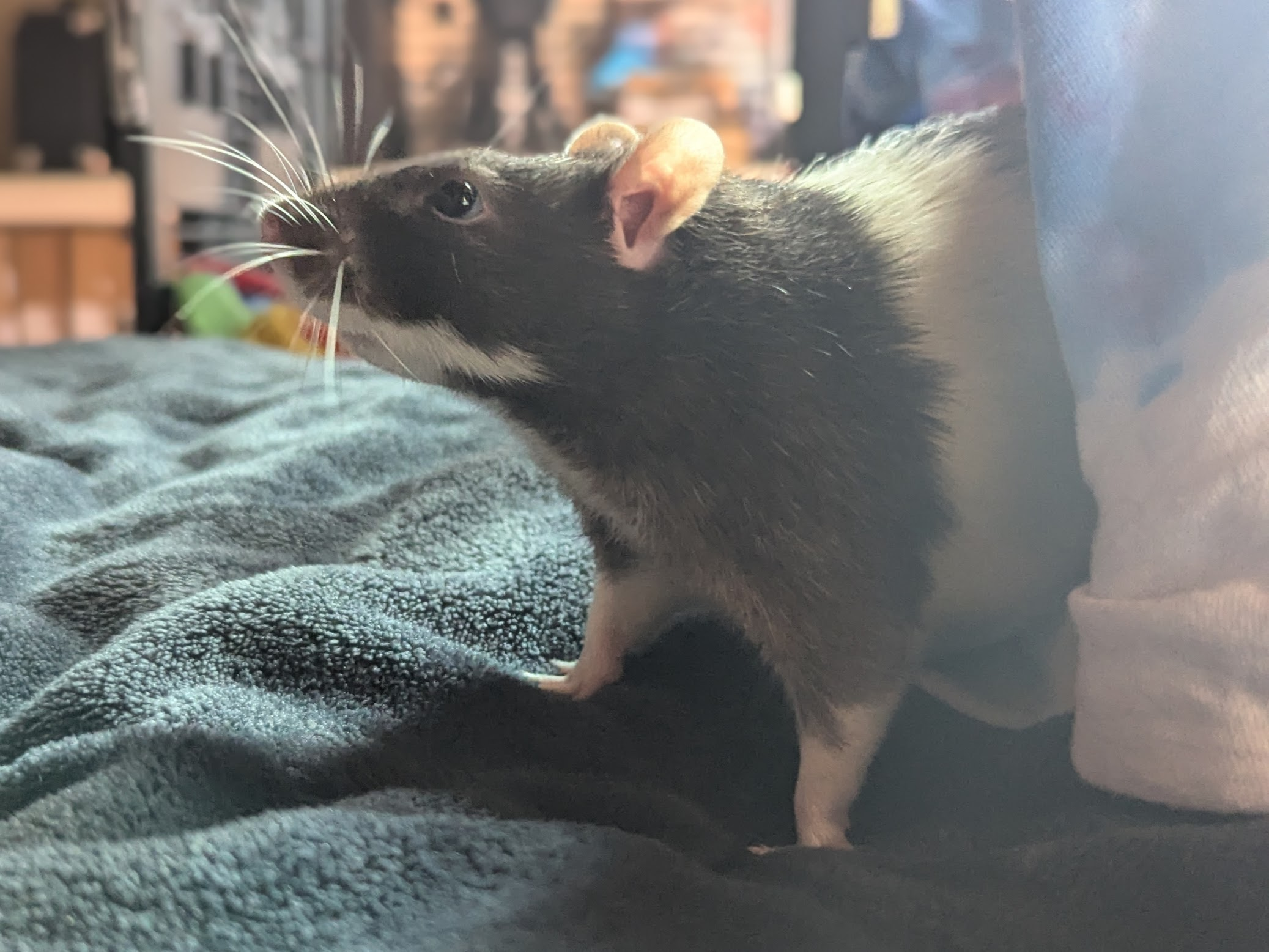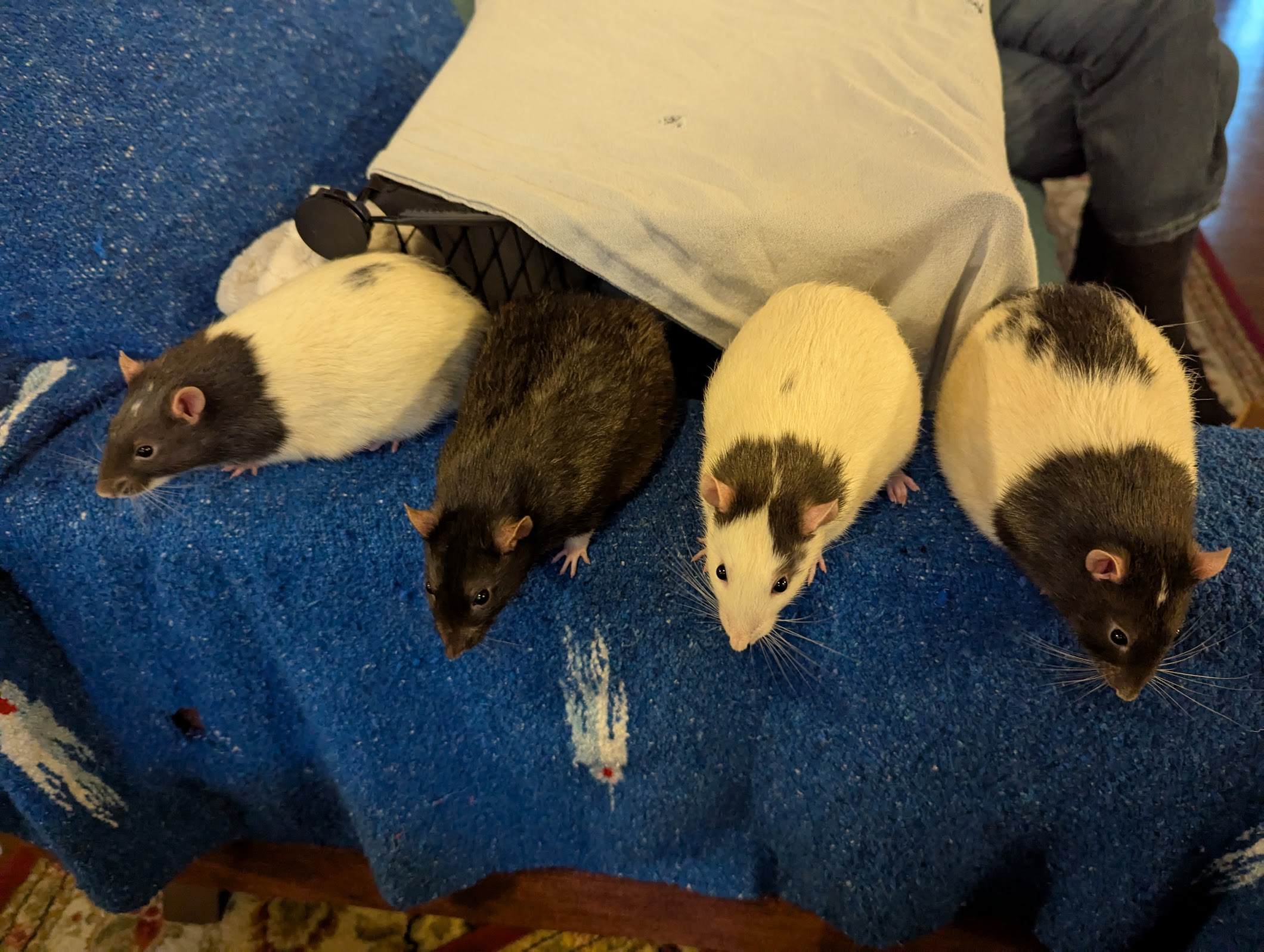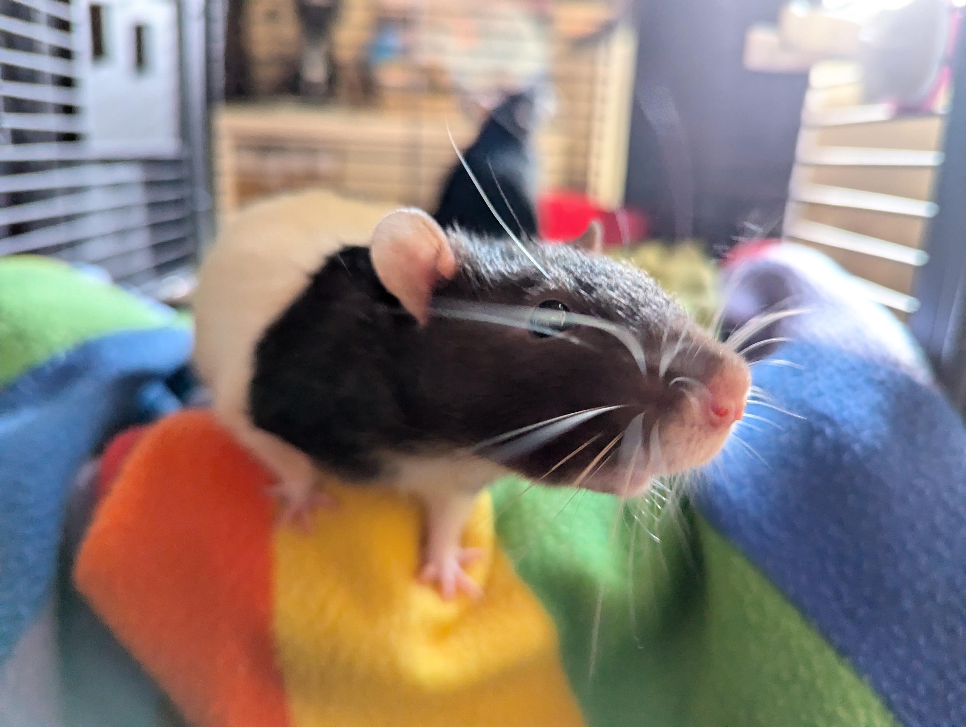 Fermi took over the strawberry hammock today because he needs a space to do his high velocity spins, so Quercy has claimed the top of the low hammock.