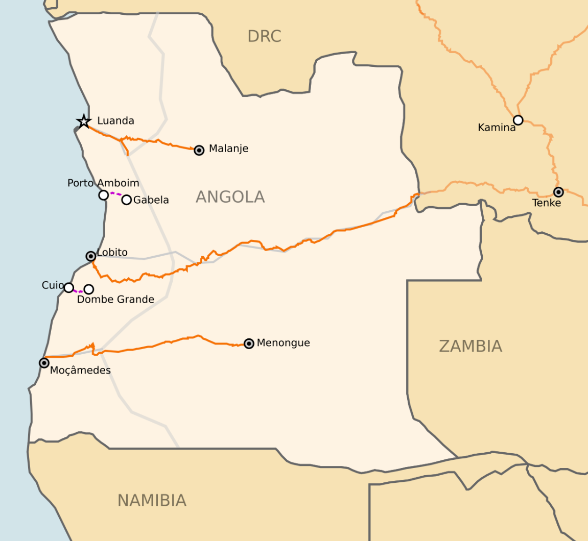 Jos aina välillä harmittaakin kehno poikittaisliikenne suomalaisessa rautatieliikenteessä, niin on se silti vähän parempi kuin Angolan "kolme samansuuntaista linjaa jotka eivät koskaan kohtaa"-rakennelma.