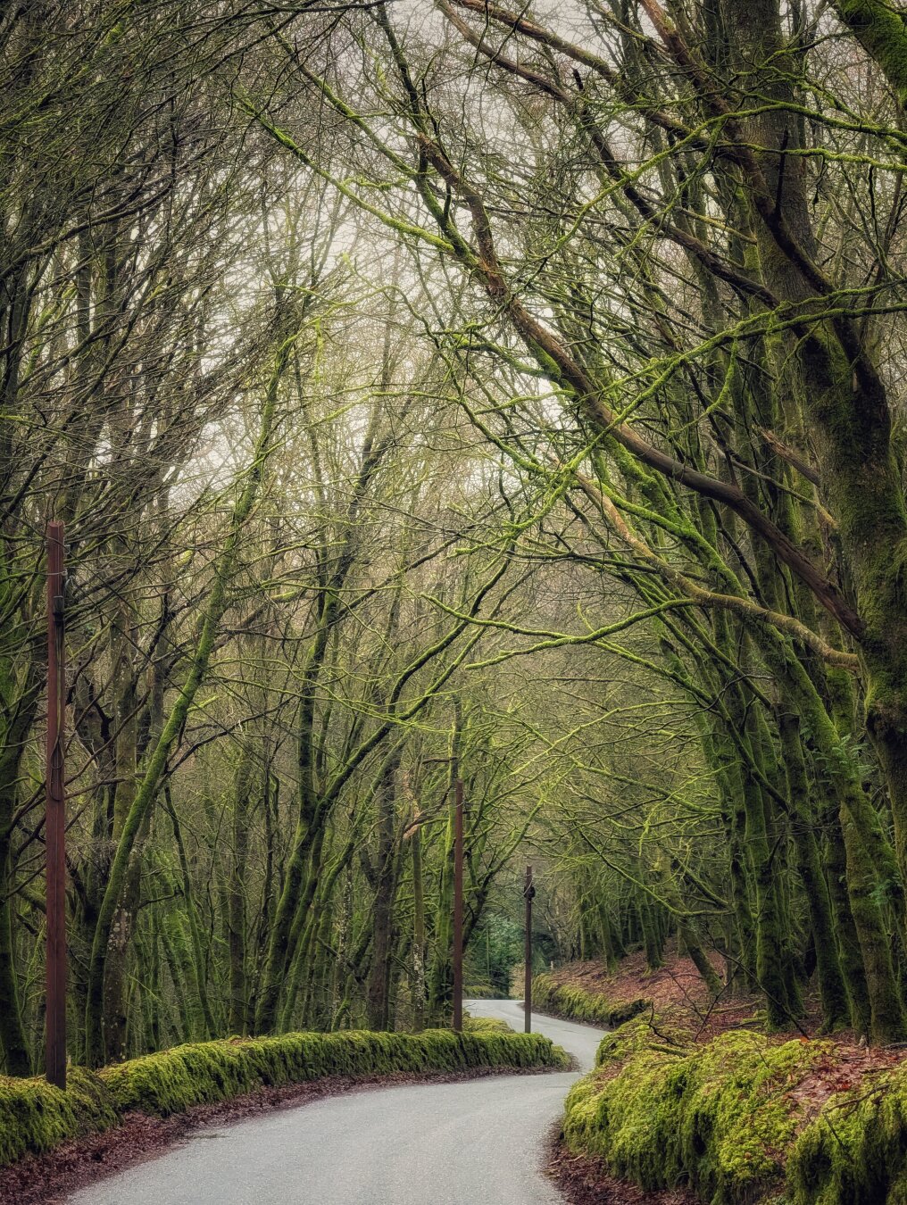 I HAD to stop on this road winding through the Ow Valley in Co. Wicklow. The bare trees were draped in bright, vivid green moss, turning the quiet road into an ethereal emerald tunnel.