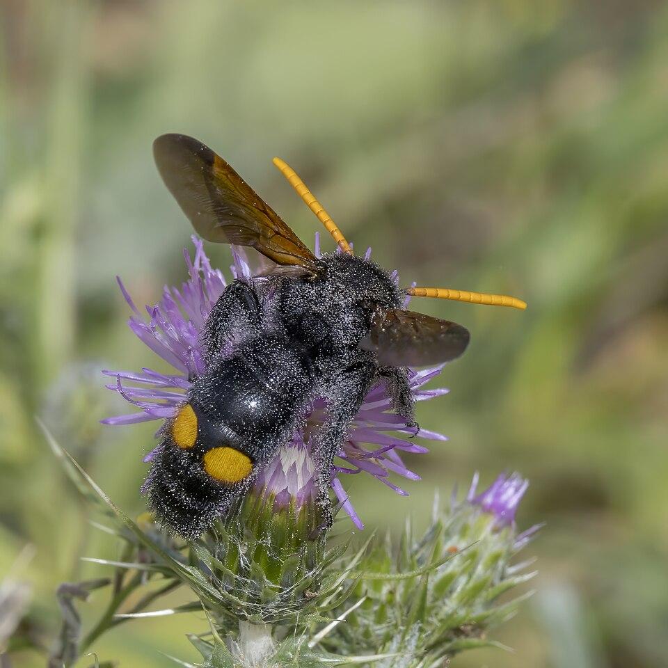 𝗪𝗜𝗞𝗜𝗣𝗘𝗗𝗜𝗔 𝗣𝗜𝗖𝗧𝗨𝗥𝗘 𝗢𝗙 𝗧𝗛𝗘 𝗗𝗔𝗬 ✧ Scoliidae ✧ Scoliidae, or the scoliid wasps, is a family of around 300 described species of wasps found worldwide. They are solitary parasitoids whose larvae develop on the larvae of other insects, most commonly the scarab beetle. Females search for hosts in soil or rotting wood, sometimes following tunnels created by the beetle larvae. After locating a host, the female stings and par...#Tunisia #Megascolia #Wikipediahttps://en.wikipedia.org/wiki/Scoliidae