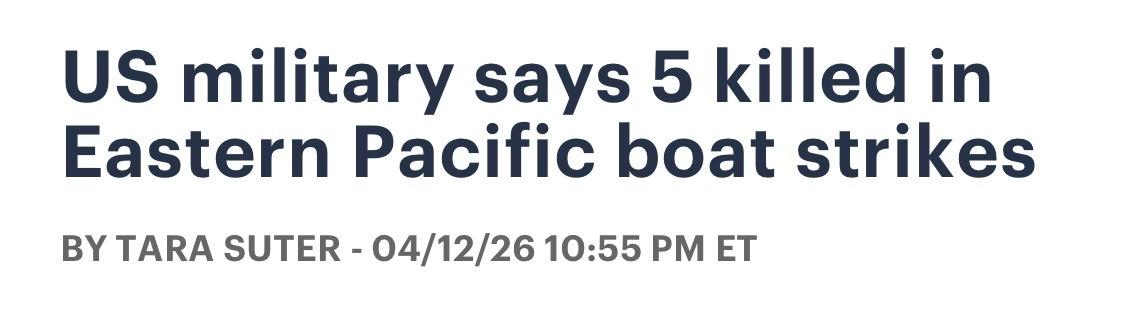 @dalfen 10 separate incidents, 10 times with no evidences of said drugs, no arrests, no due process, no survivors, all unknown civilians. Did I get all those right? Has there been any survivors but one recently?What do you call these if not crime against humanity?