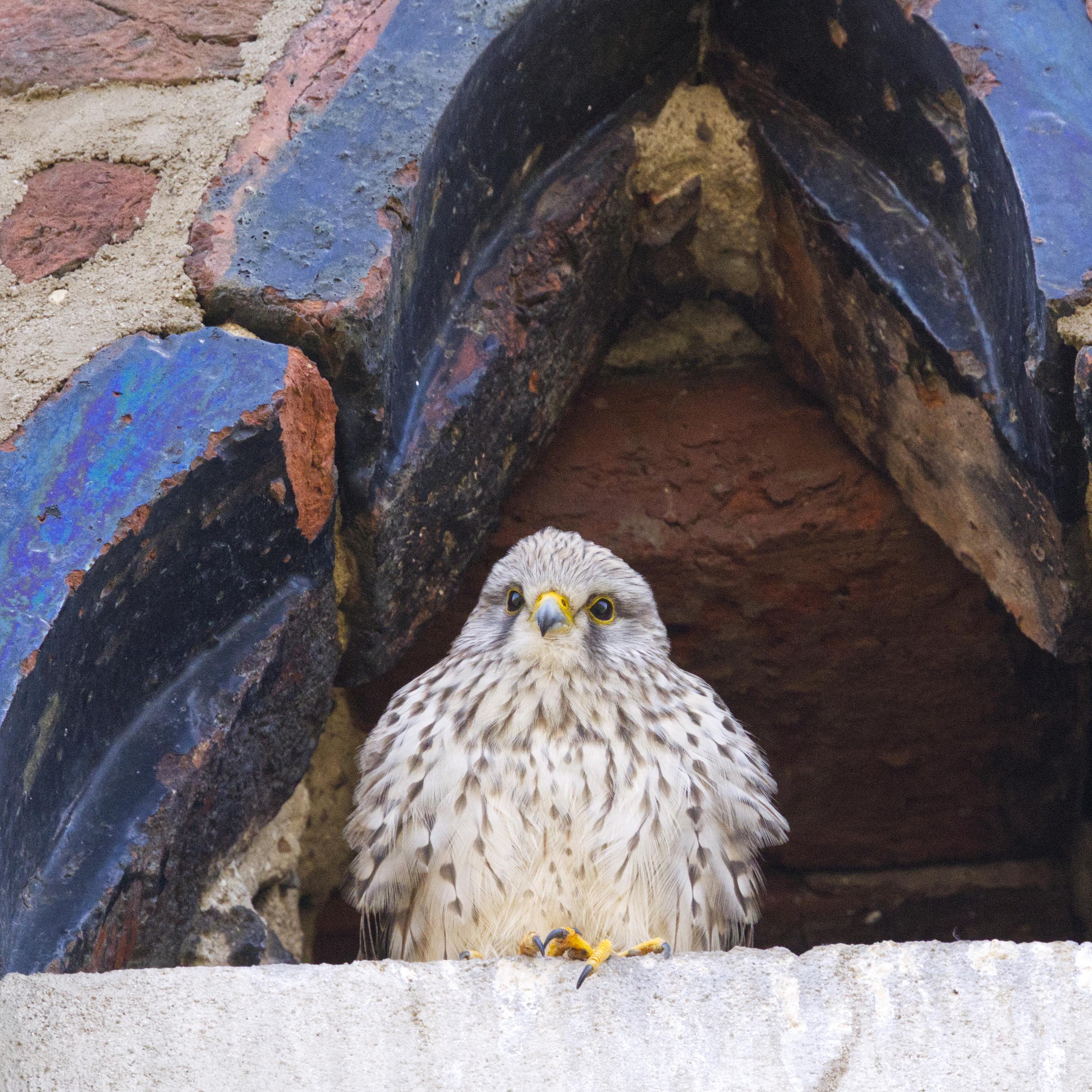 #GutenMorgen Fediland. Dieser Falke wurde von einer Dohlenbande aus seiner warmen Bude am Südgiebel des alten Wirtschaftsgebäudes vertrieben und muß nun am Nordgiebel hausen.Jetzt sitzt er dort und schreit die Leute an (wenn er nicht gerade fotografiert wird).Habt einen schönen Dienstag.#Fotografie #Photography #Vögel #Birds #BirdsOfMastodon