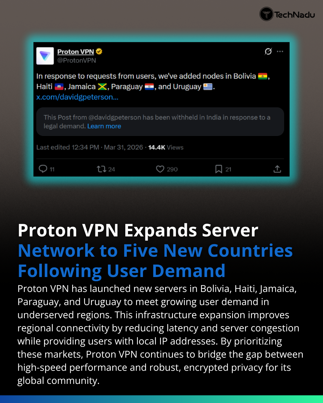 Proton VPN expands to 5 new countries 🌍New servers improve latency, privacy, and regional access in underserved markets