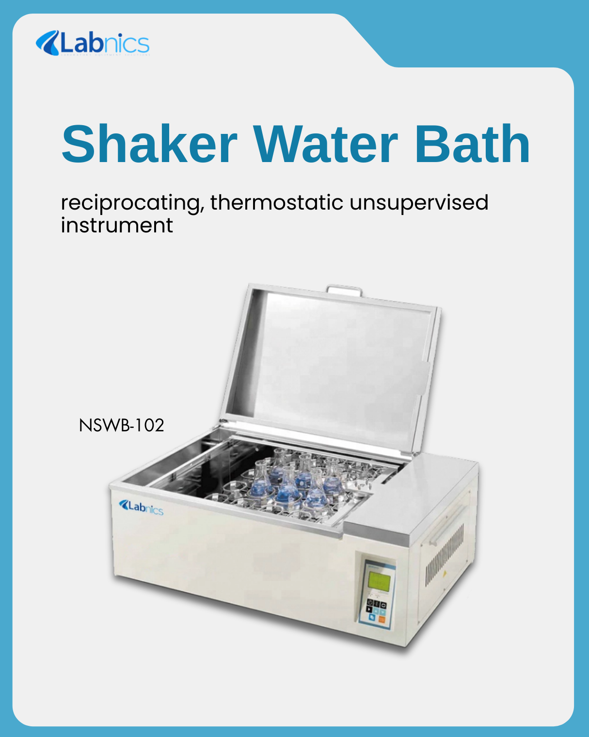 Shaker Water Bath NSWB-102-shaker bathLabnics Shaker Water Bath offers uniform heating from 5–100 °C with adjustable shaking speed for consistent mixing. It features a clear digital display and corrosion-resistant chamber. Ideal for incubation, sample mixing, and other lab tasks needing controlled temperature and agitation.https://www.labnics.com/shaker-water-bath/nswb-102#LabEquipment #Water Bath#Labnics