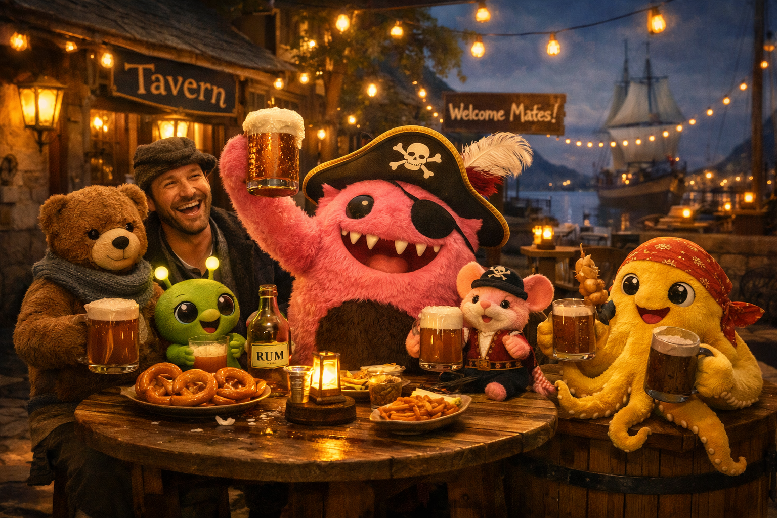 Hallo liebe Crew!Ich habe das Logbuch zugeschlagen und verkünde: „Die Crew hat Landgang.“Von Freitagabend bis Sonntagabend – ganze 48 Stunden.Das Schiff liegt ruhig im Hafen. Die Laternen werfen warmes Licht auf das Holzdeck und irgendwo klirren Becher.Stellar bestaunt die Lichterketten am Kai. Frederik sitzt wachsam in der Nähe der Schatztruhe. Störtebecker versucht gleichzeitig zu trinken und Snacks zu klauen – was mit acht Armen erstaunlich gut funktioniert und Willi lächelt nur ruhig und erinnert sich vermutlich an viele andere Landgänge.Es ist kein großes Fest. Aber einer dieser Abende, an denen eine Crew einfach zusammen sitzt. Denn manchmal ist genau das der größte Schatz.Erst am Montag werden die Segel wieder gesetzt.Bis dahin wünschen wir euch allen einen schönen Landgang.‍️#Piratenmonster #PinkReist #Straßenpiraten #Wochenende #Piratencrew