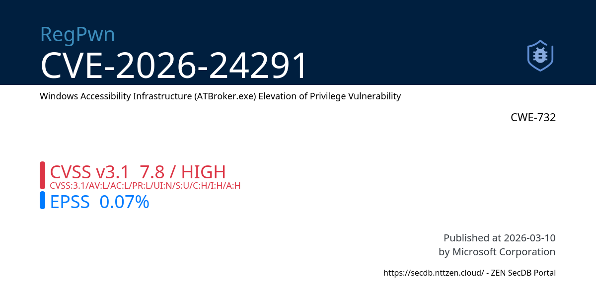 🚨 CVE-2026-24291 (RegPwn)Windows Accessibility Infrastructure (ATBroker.exe) Elevation of Privilege Vulnerability
