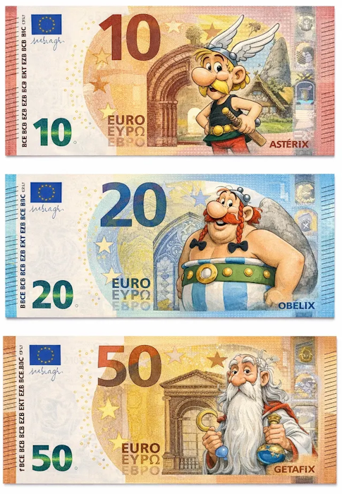 Jetzt ist es offiziell: In Frankreich werden #Asterix, Obelix und Miraculix ab 1. Oktober 2026 auf den Geldscheinen zu sehen sein. Warum man sich für den englischsprachigen Namen von Miraculix statt des französischen Panoramix entschieden hat, erschließt sich mir auch nicht.