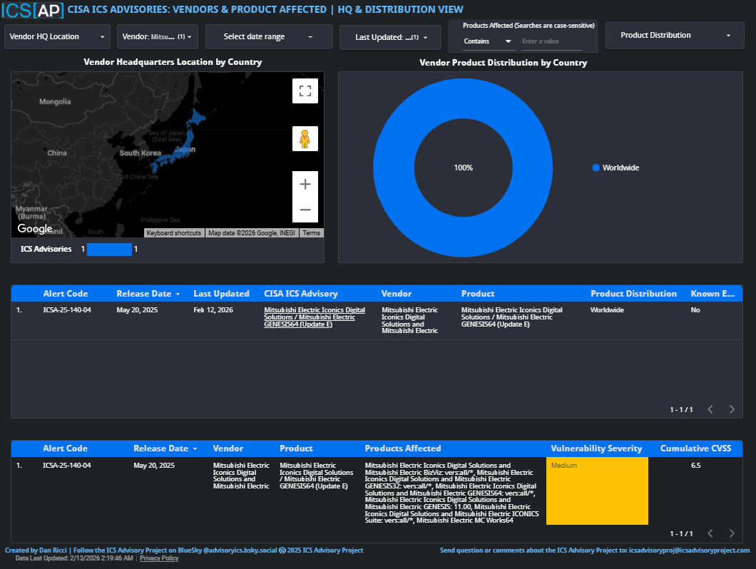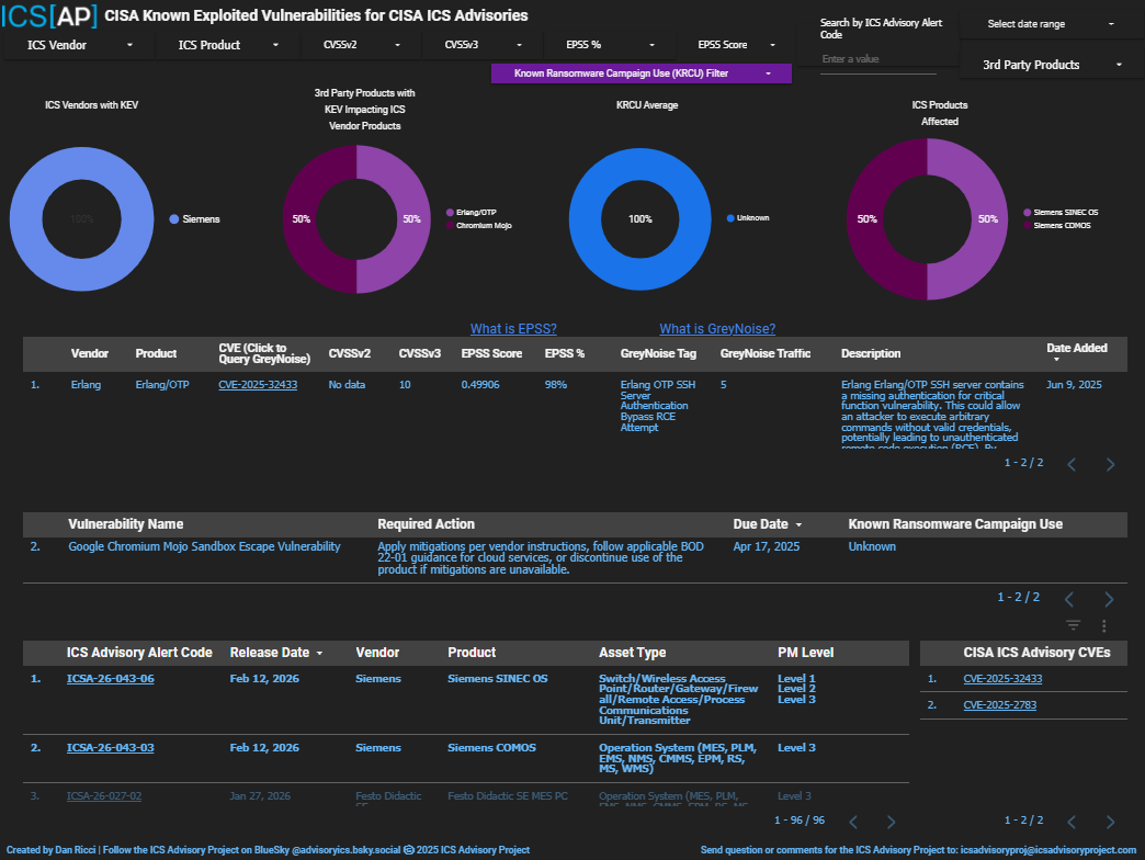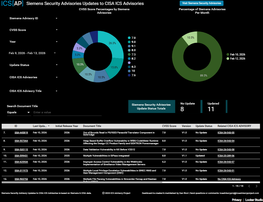 ICS[AP] Dashboards are updated with the 11 CISA Advisories released on 2/12/26:
