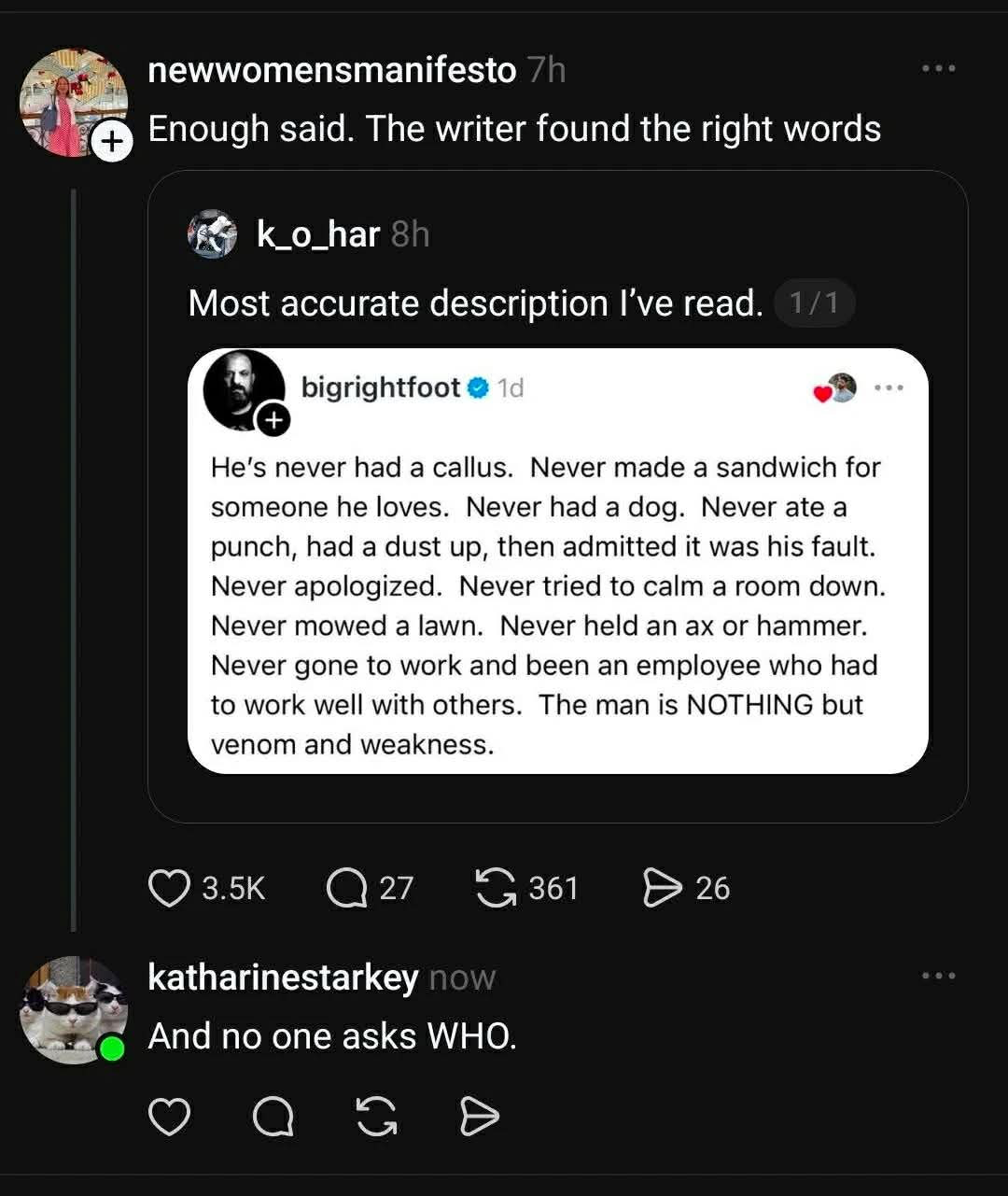@GeriAQuin We all think of the same one person first, but it strikes me this is actually a lot of people. Almost every single one of them someone with too much money and too much power.