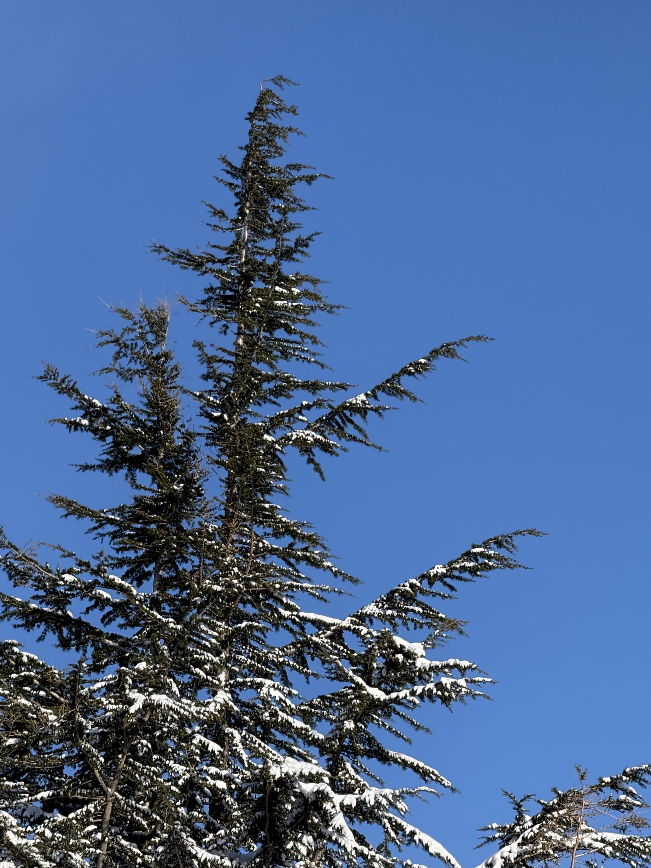 The sky was blue briefly in the morning, but the temp didn't go above freezing, so very little melted. Snow will return tomorrow, they say.