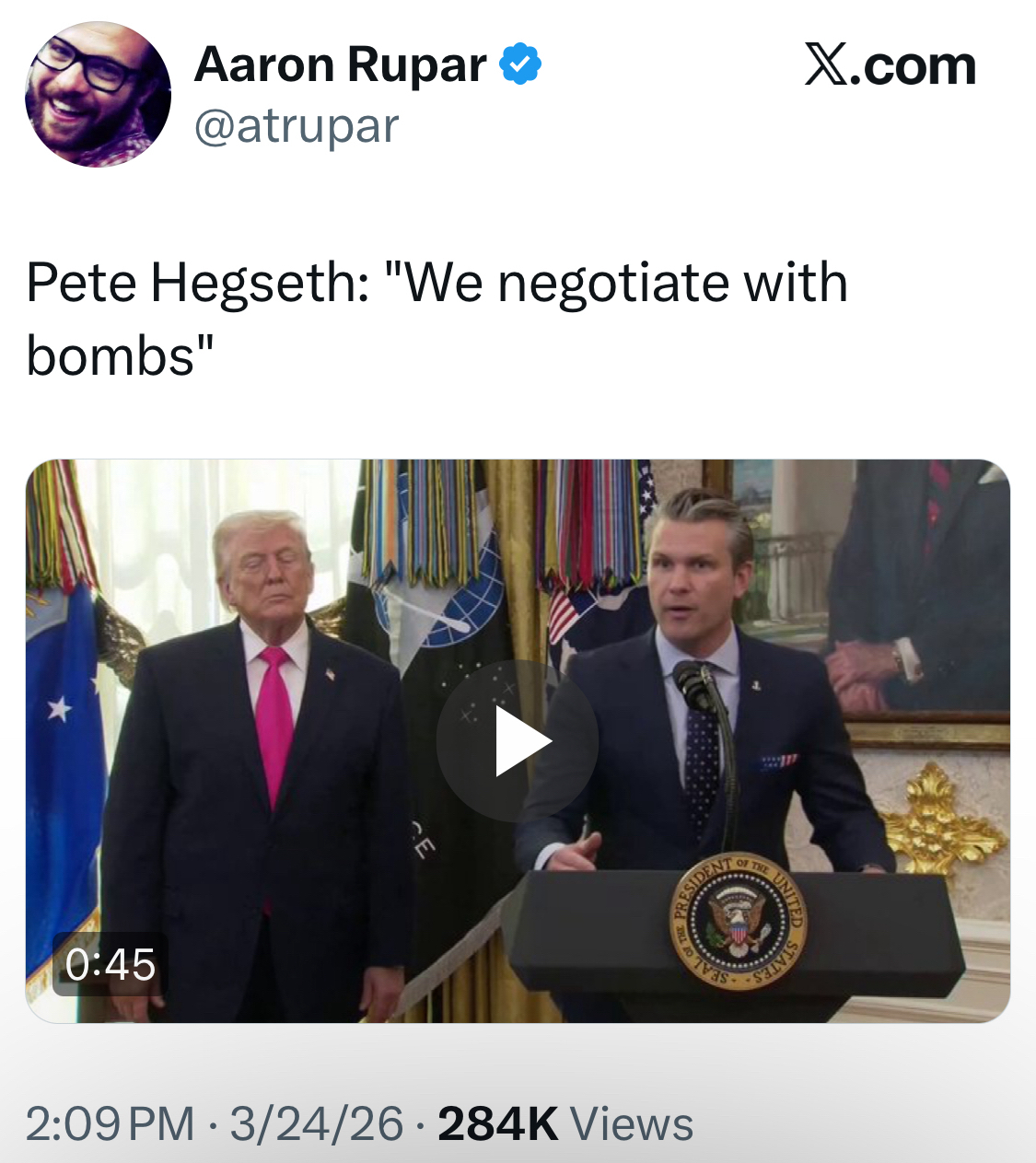 L: Hegseth R: Advisor to former President Rouhani of Iran