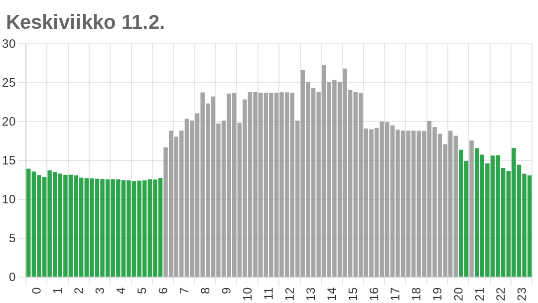 Huomenna sähkö on halpaa yöllä sekä klo 20:30–21 ja 21:15–24.