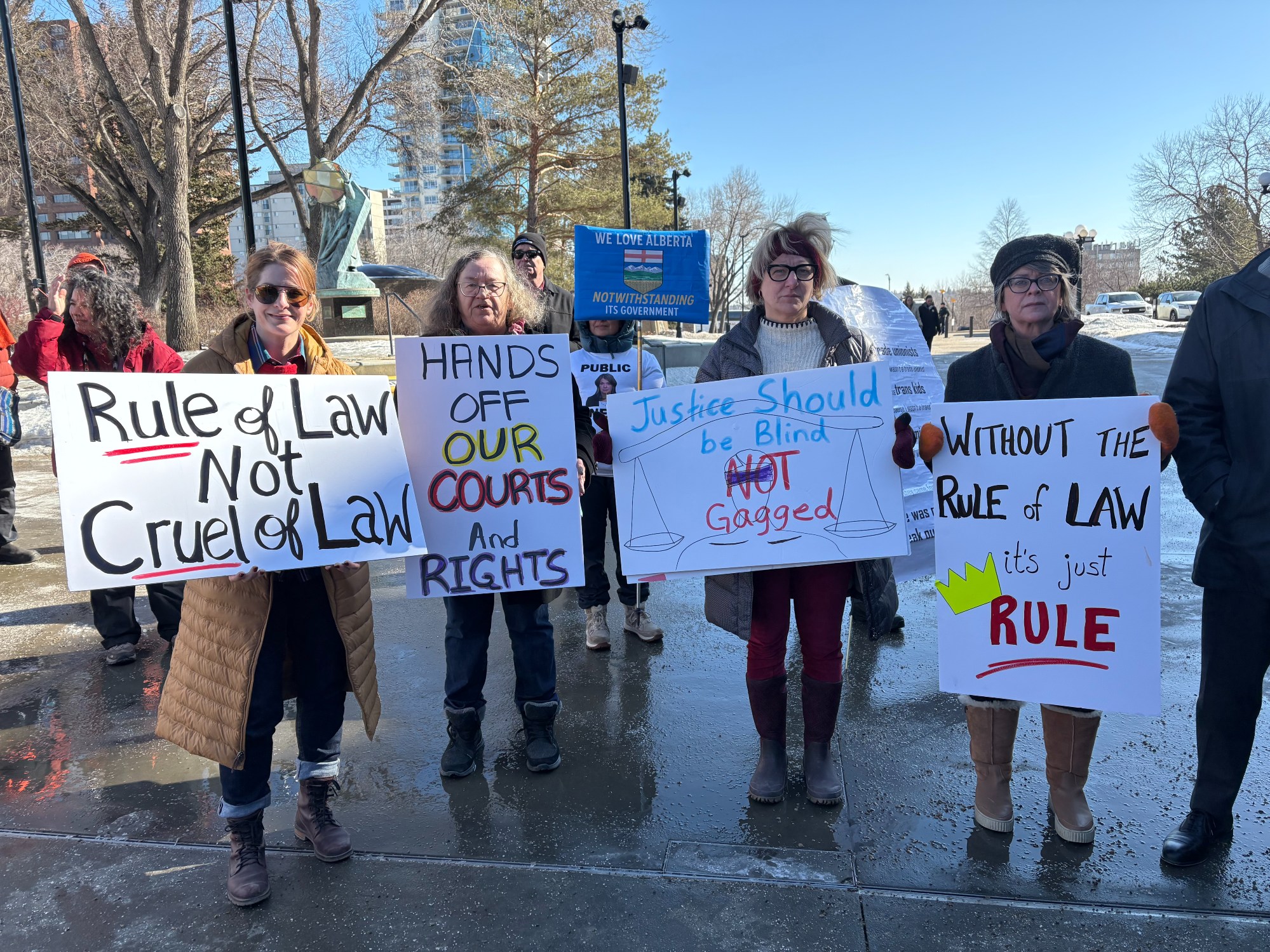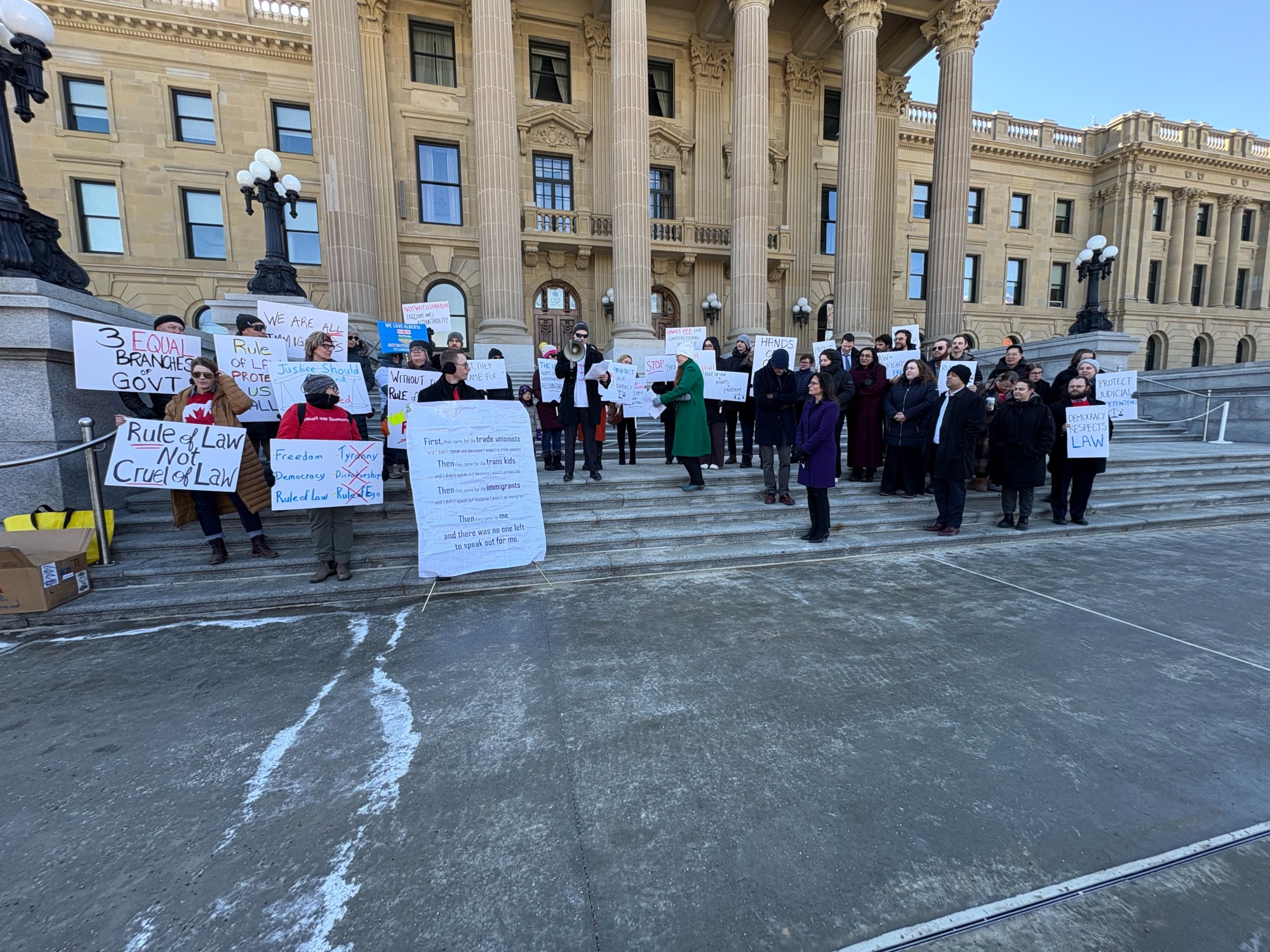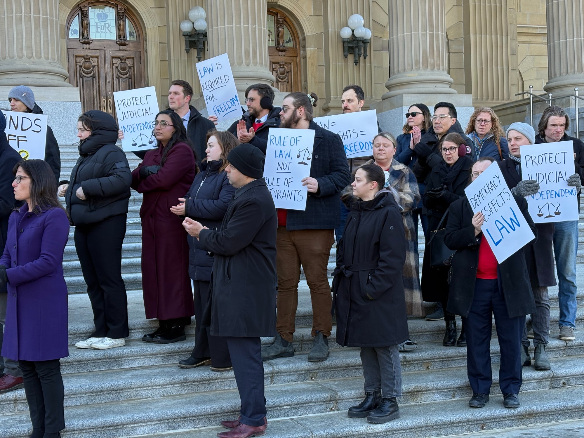 On March 10th, the Alberta Coalition of Defence Lawyers organized a protest at the Alberta Legislature against the UCP for using the Notwithstanding clause, attacking the independence of the judiciary, among other legal-related issues. -- #yeg
