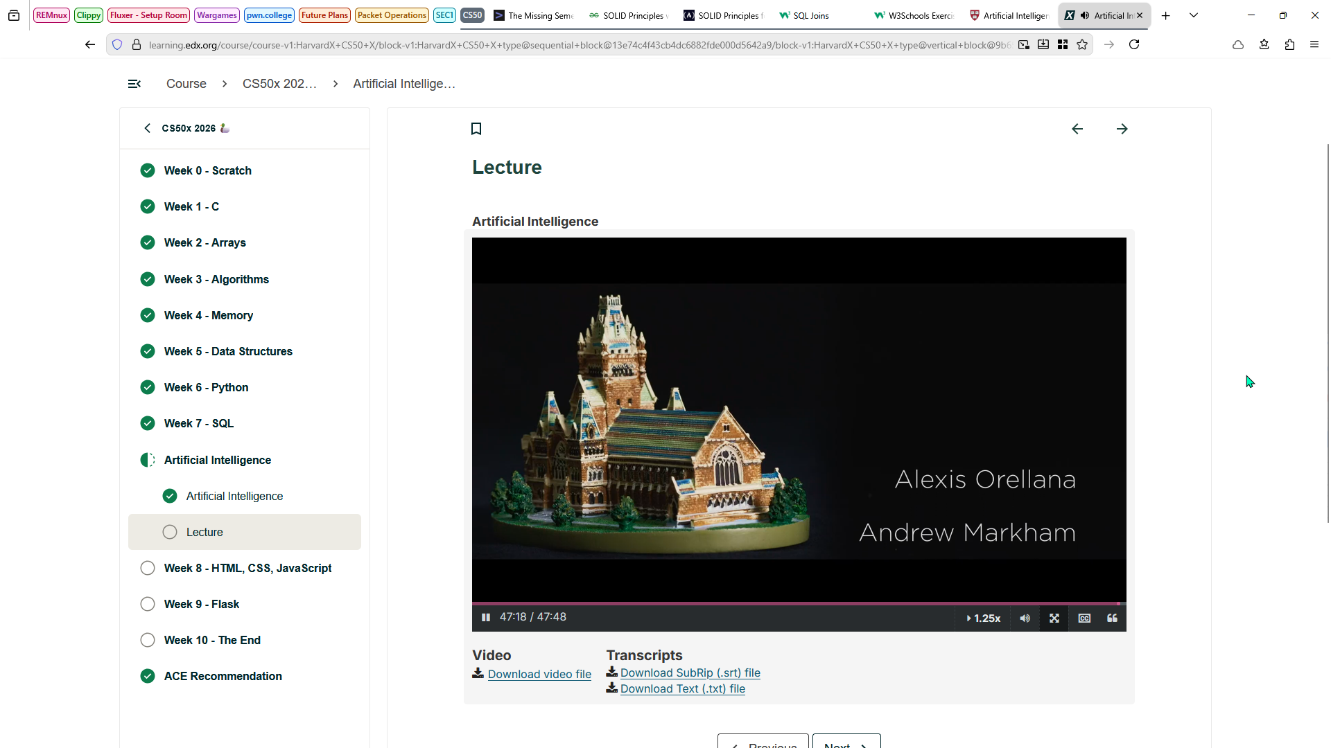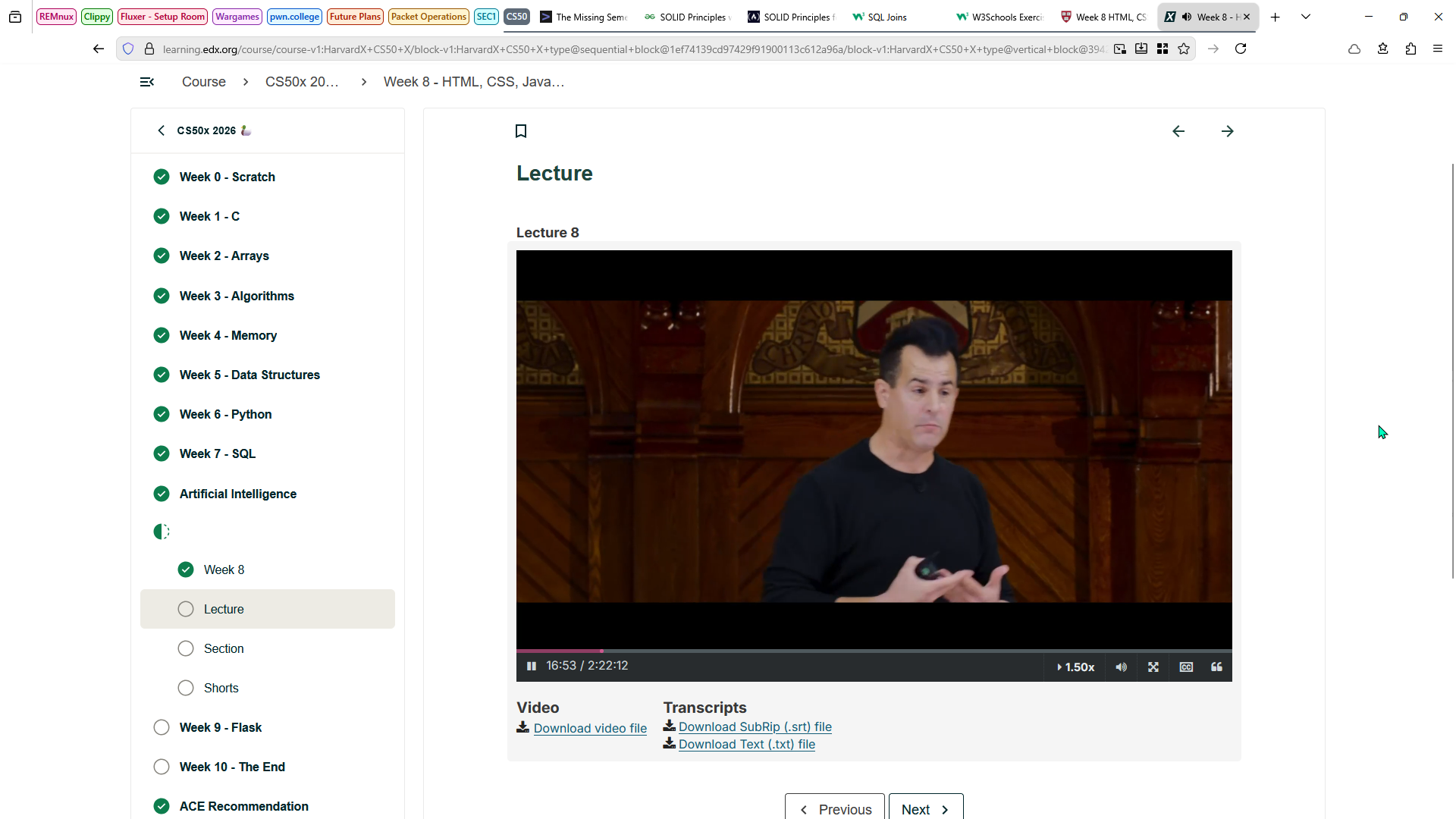 Finally, I finished the artificial intelligence lecture from CS50, and now I'm studying the HTML, CSS, and JavaScript section. Hopefully, I'll finish this week's problem set tomorrow.